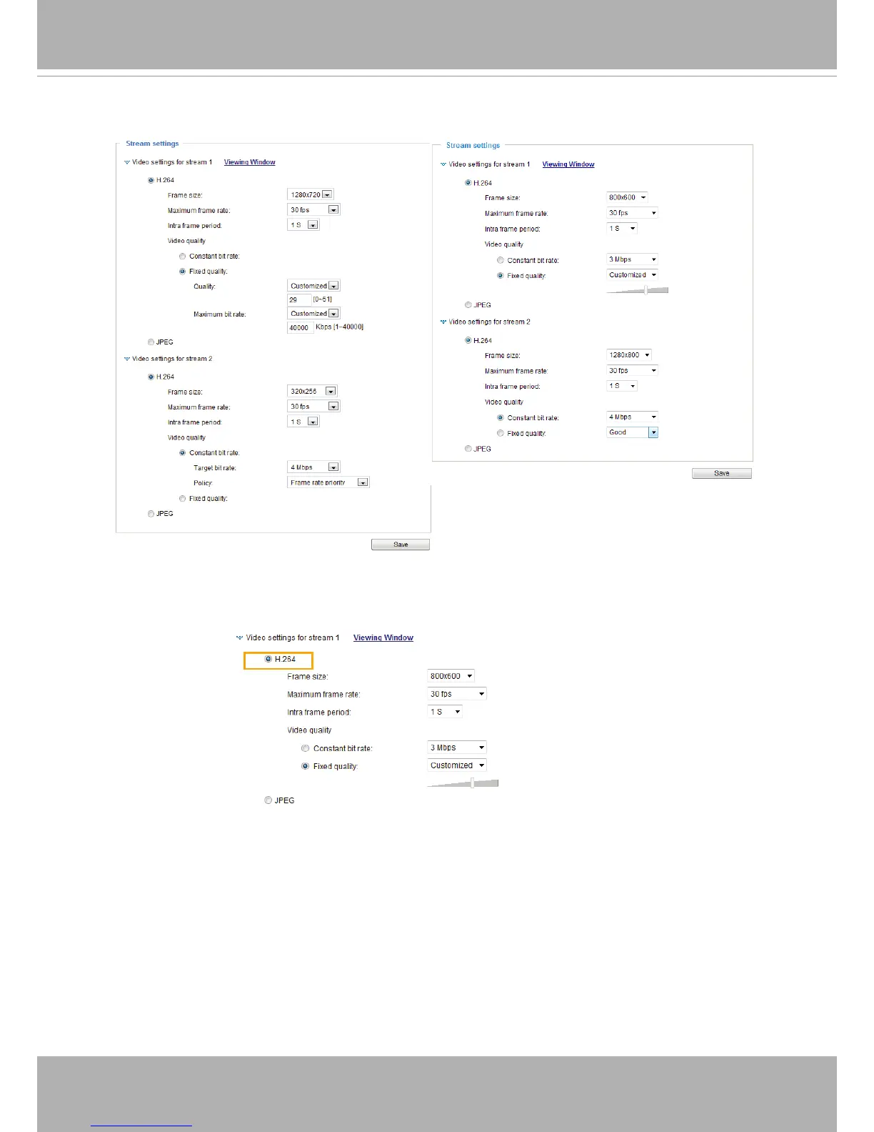 for real-time viewing� If H.264 mode is selected, the video is streamed via RTSP protocol� There