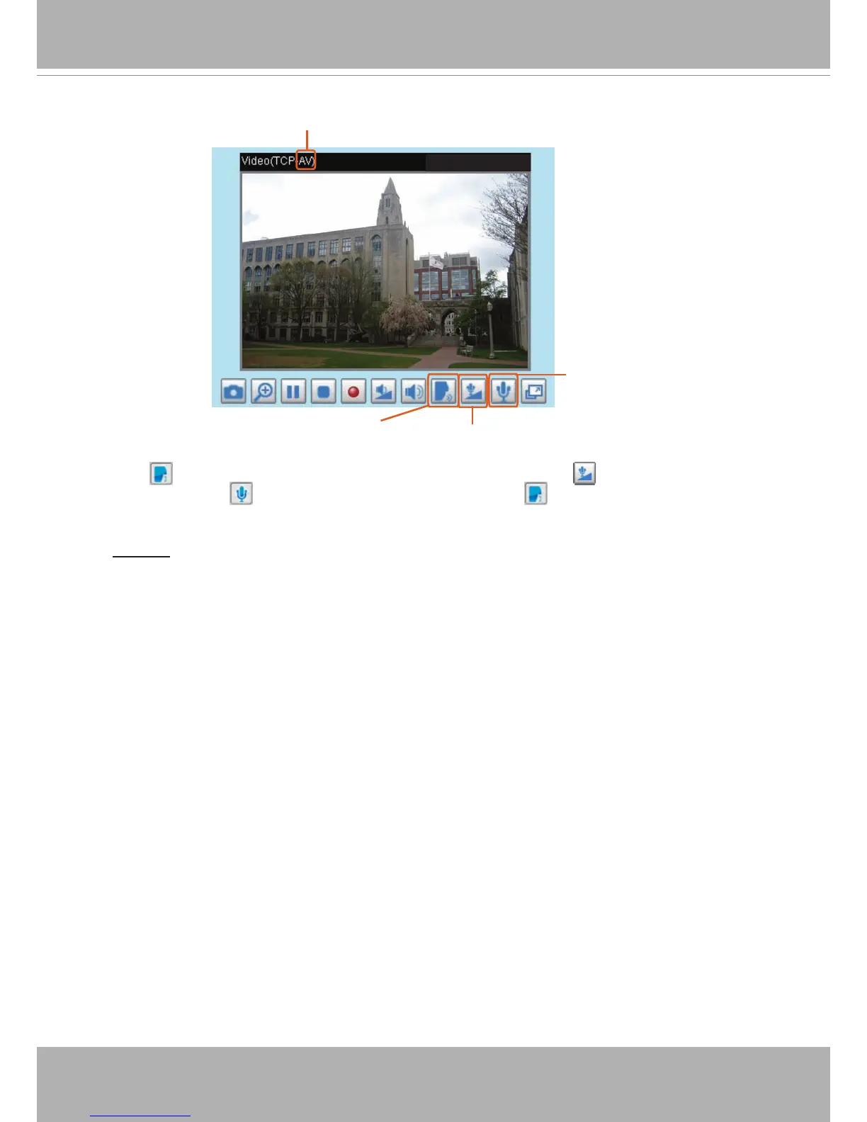 Click to enable audio transmission to the Network Camera; click to adjust the volume of