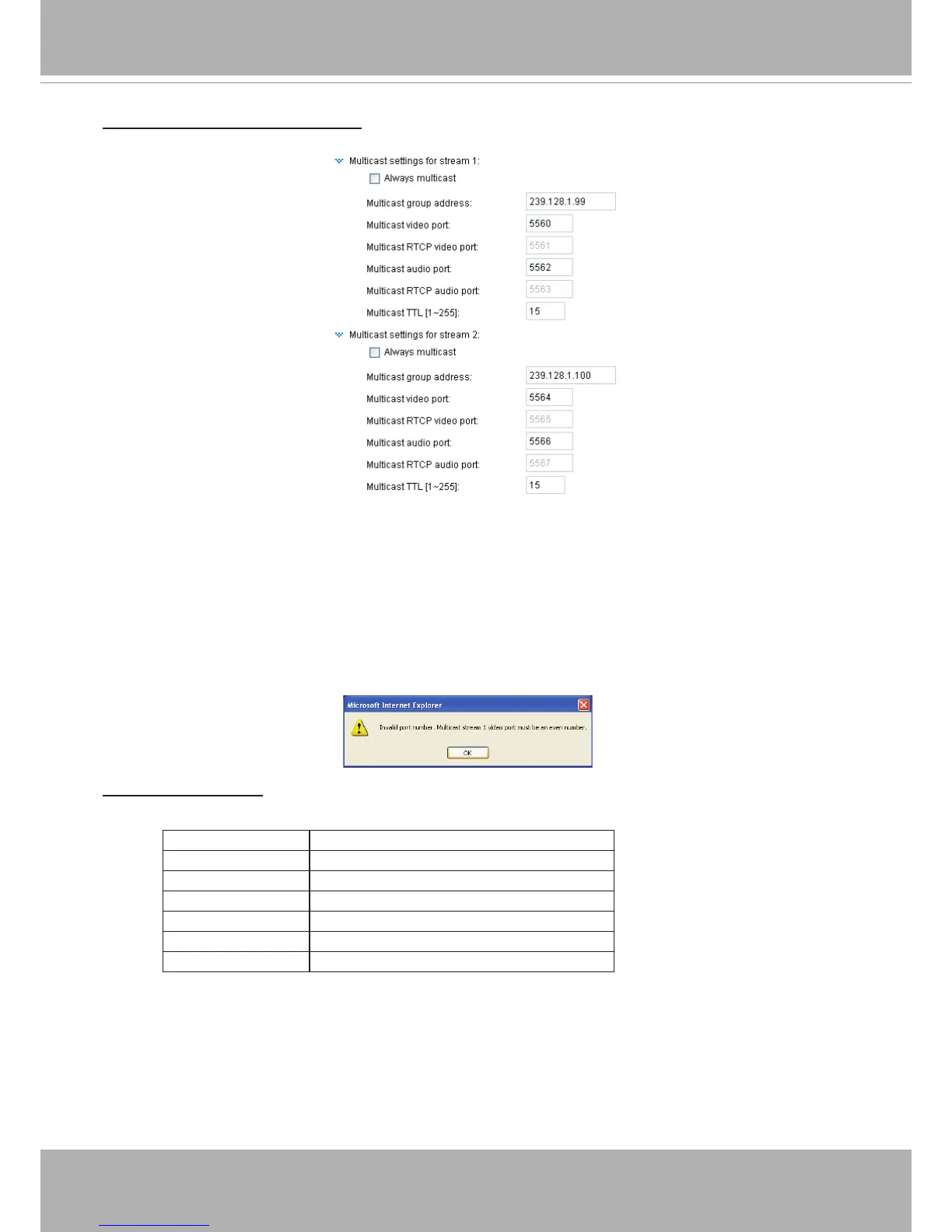 The port numbers can be changed to values between 1025 and 65535� The multicast RTP port must
