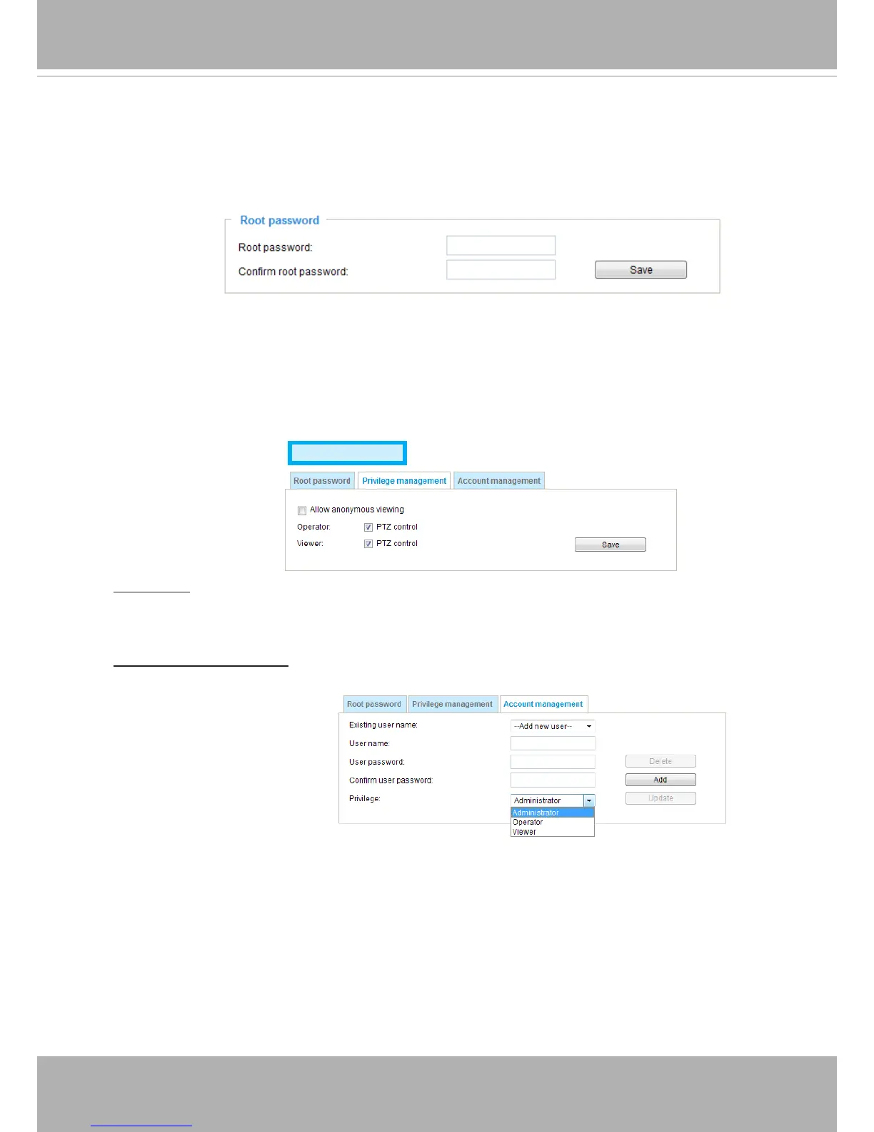 PTZ control: You can modify the management privilege of operators or viewers� Check or uncheck