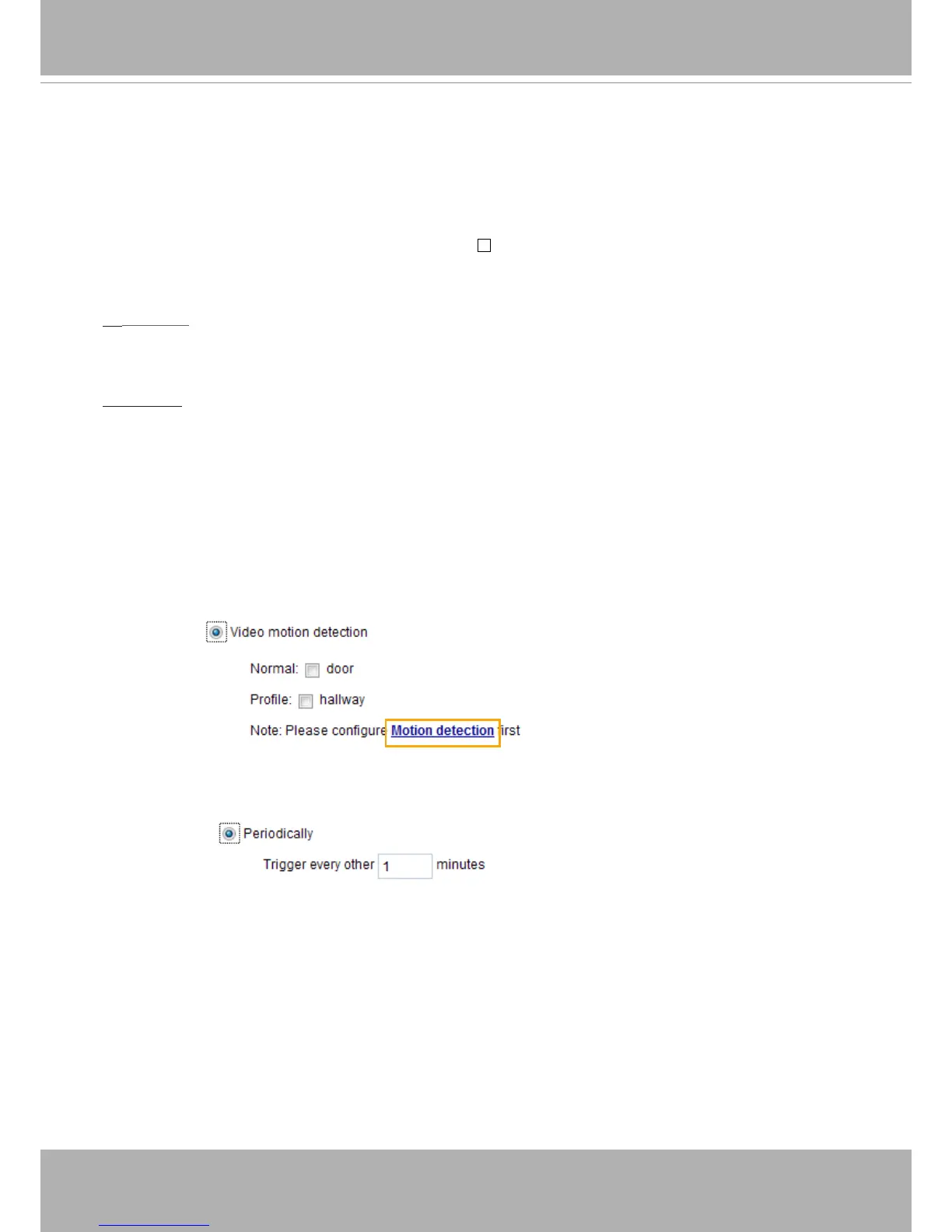 This option allows the Network Camera to trigger periodically for every other dened minute. Up to 999