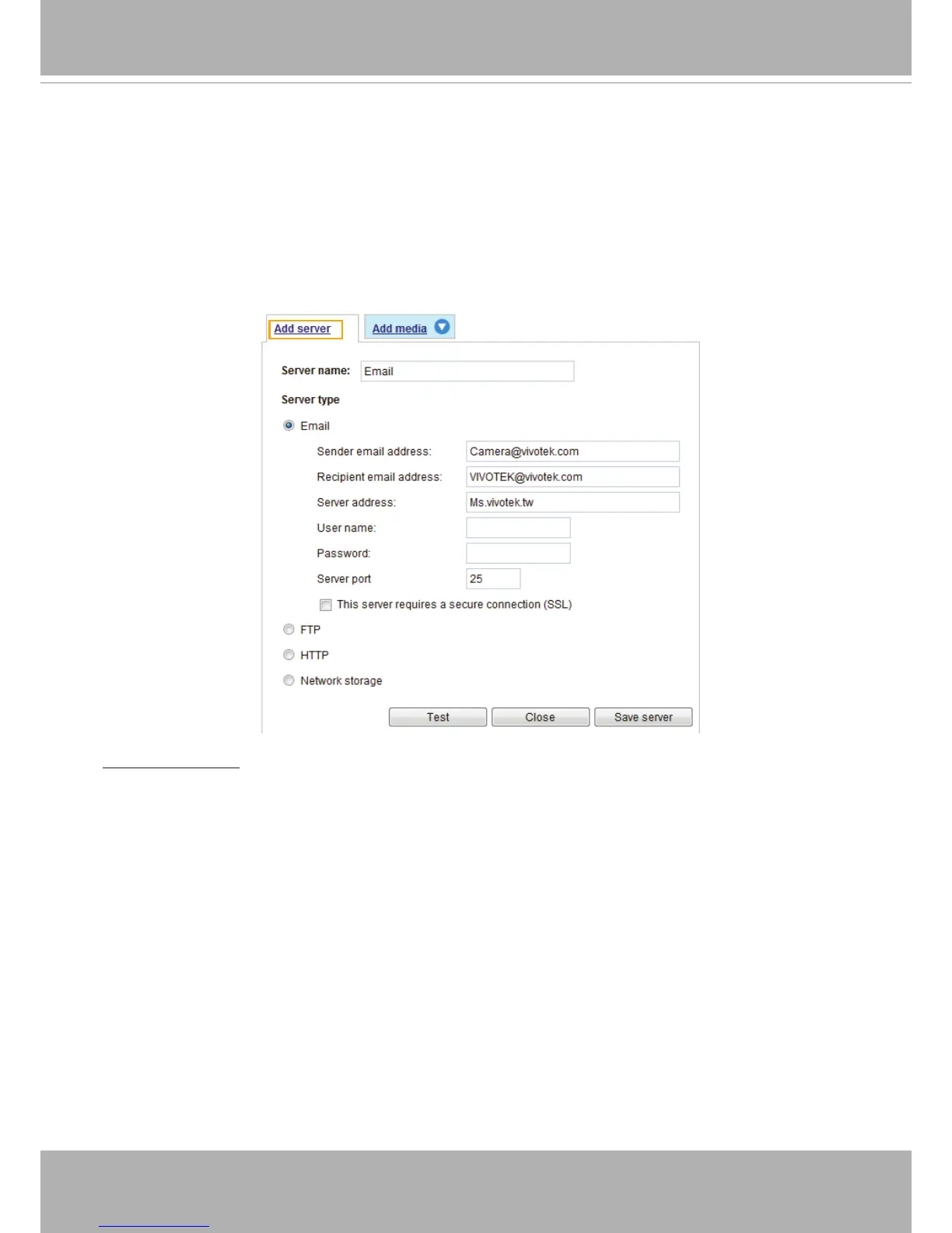 media settings so that the Network Camera will know what action to take (such as which server to send
