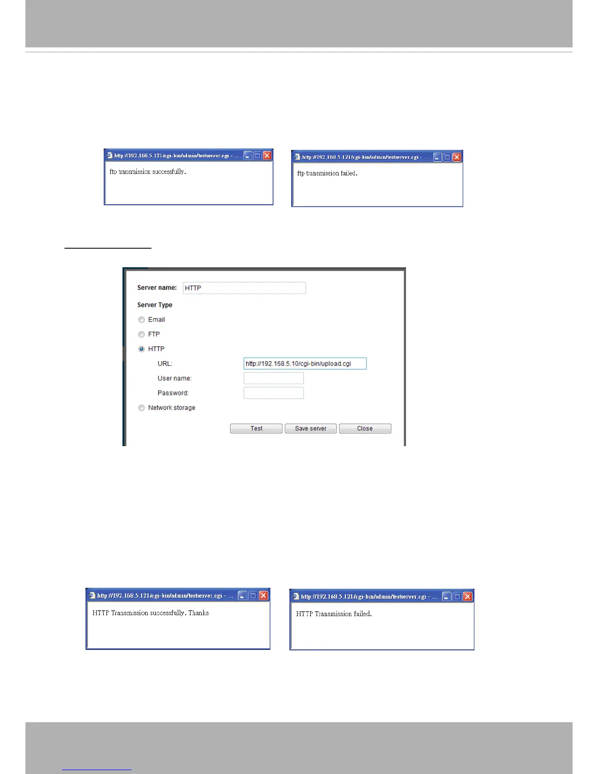 To verify if the HTTP settings are correctly congured, click Test� The result will be shown in a pop-up