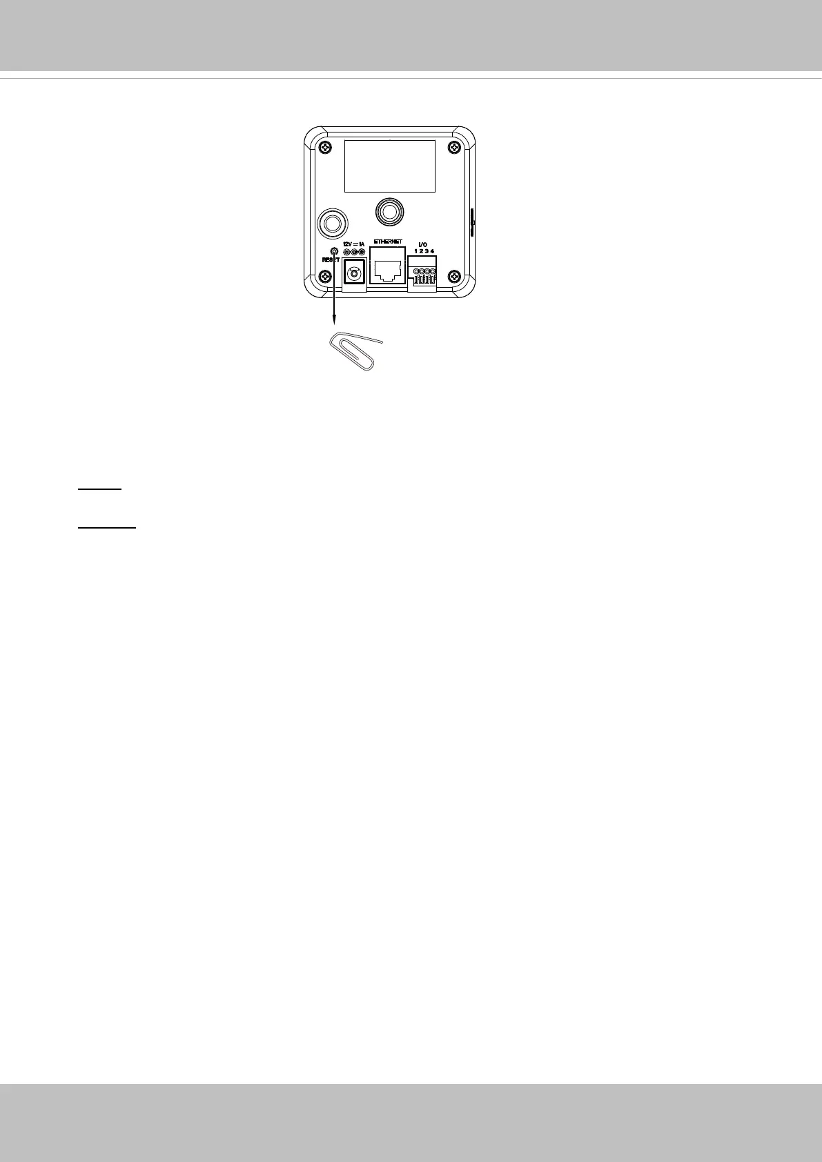 Reset: Press and release the reset button� Wait for the Network Camera to reboot�