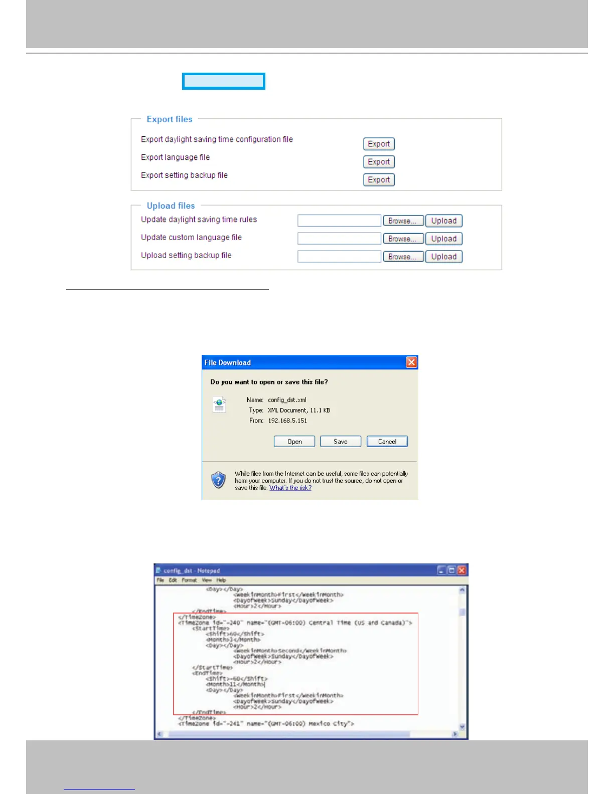 Export daylight saving time conguration le: Click to set the start and end time of DST.