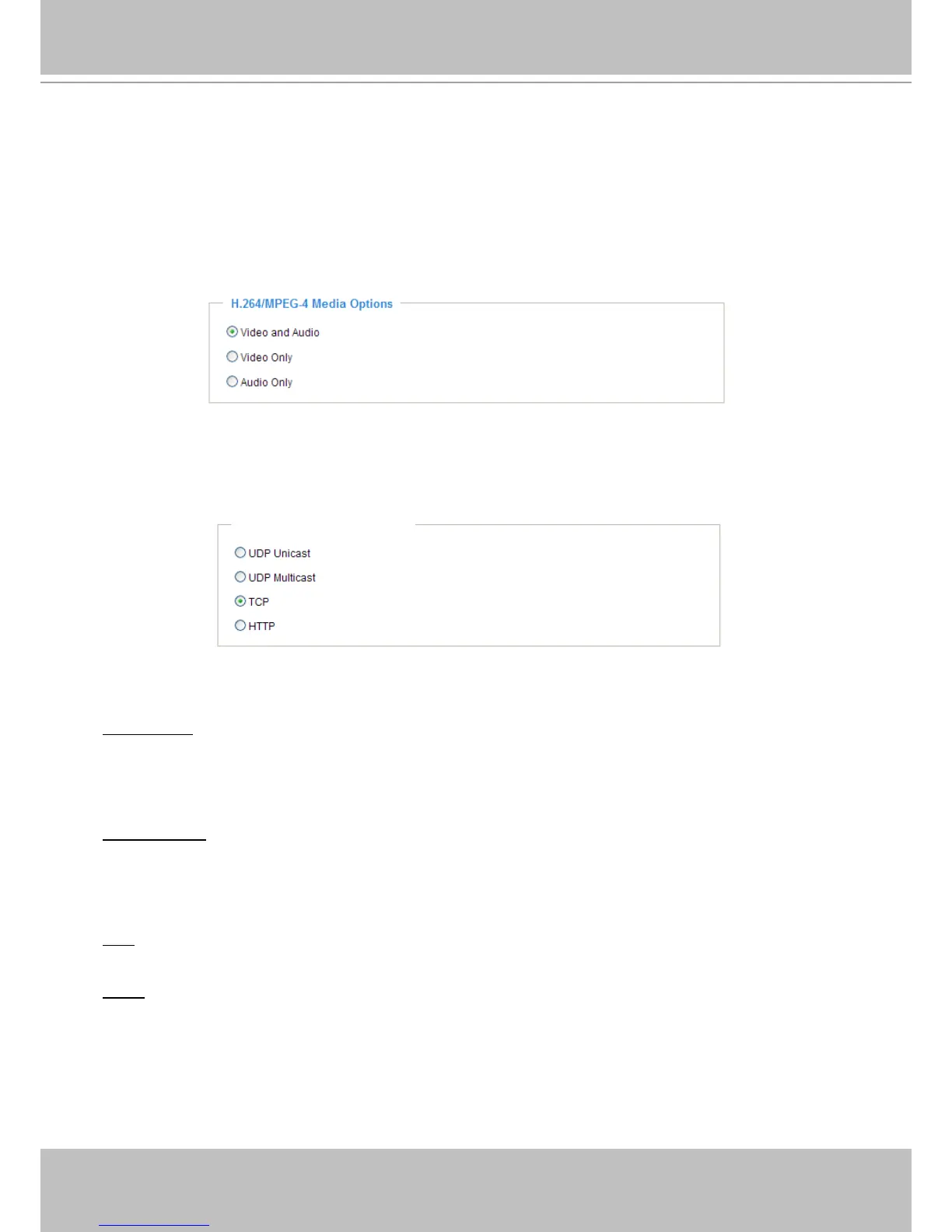 Select to stream video or audio data or both� This is enabled only when the video mode is set to H�264 or