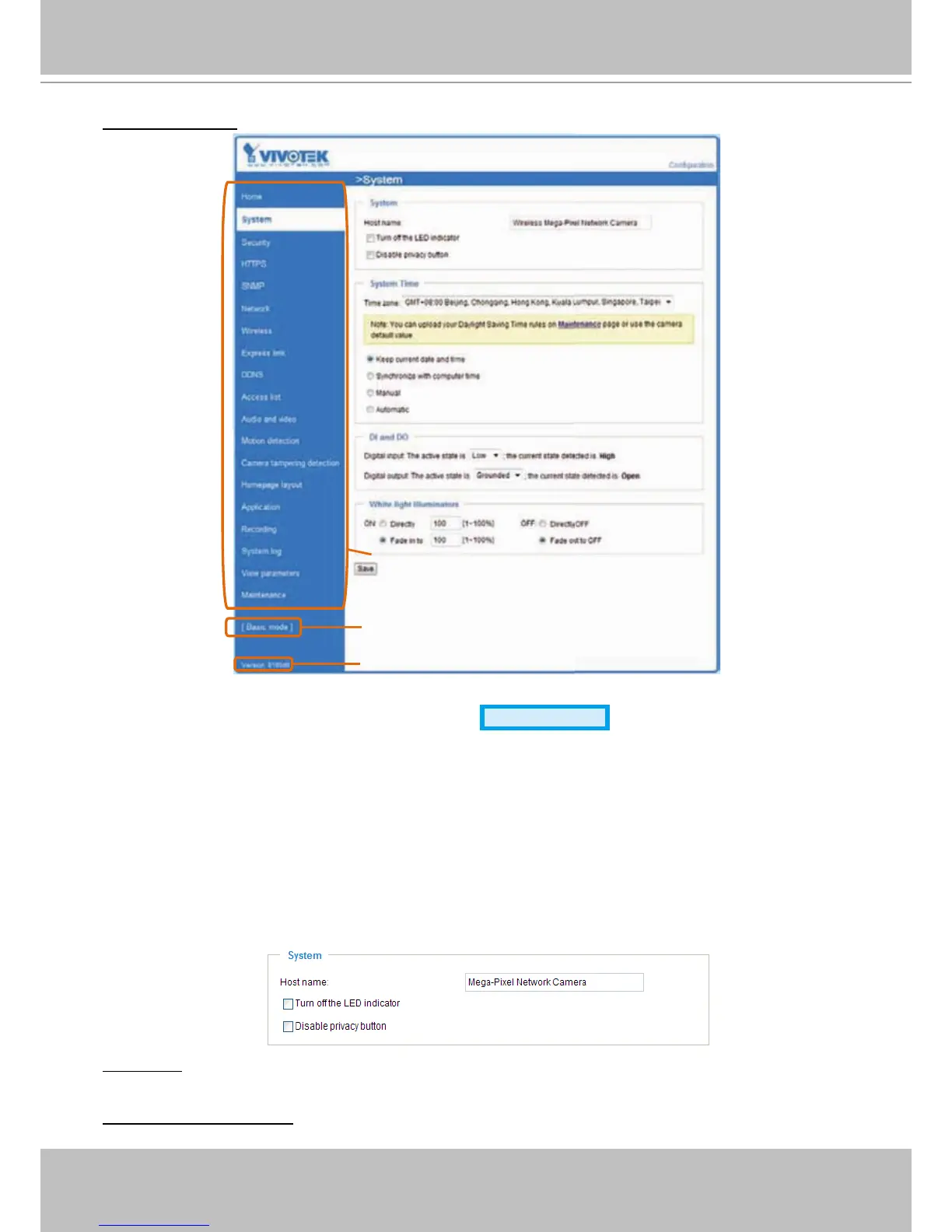 This section explains how to congure the basic settings for the Network Camera, such as the