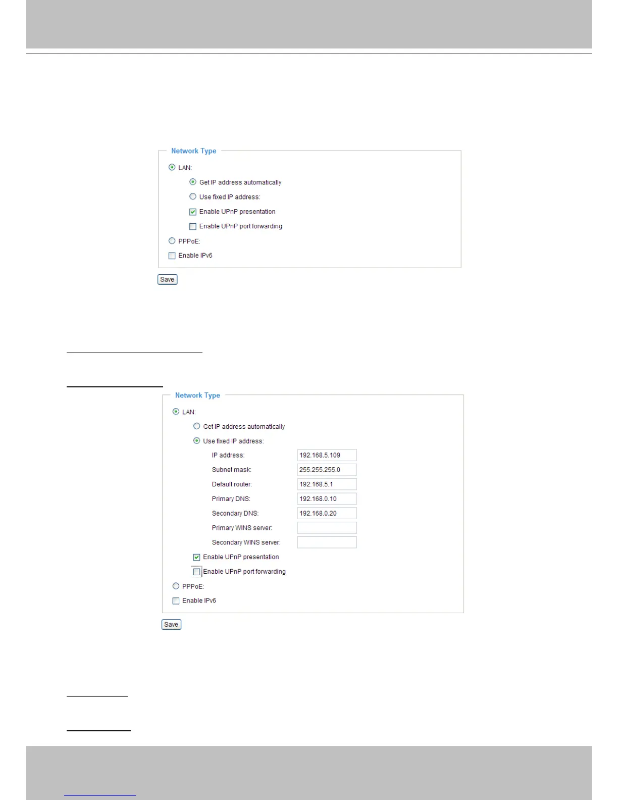 Use xed IP address: Select this option to manually assign a static IP address to the Network Camera.