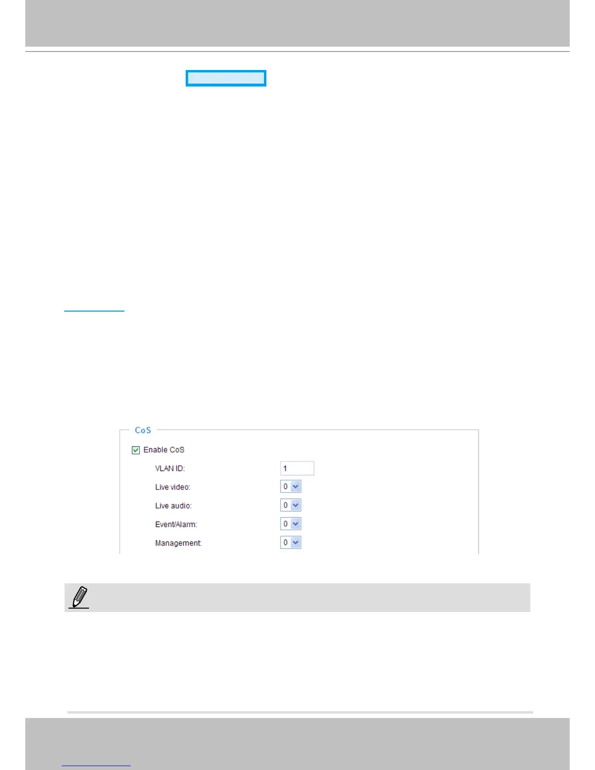 Below is the setting column for CoS� Enter the VLAN ID of your switch (0~4095) and choose the priority