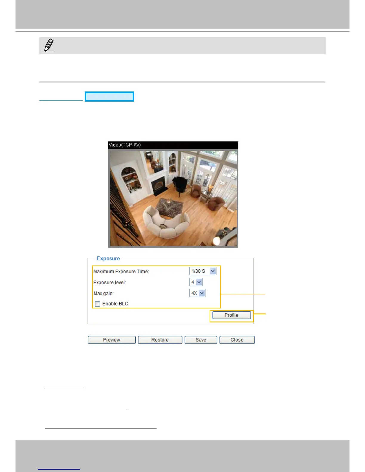 exposure time, exposure level, and AGC (Auto Gain Control) settings�