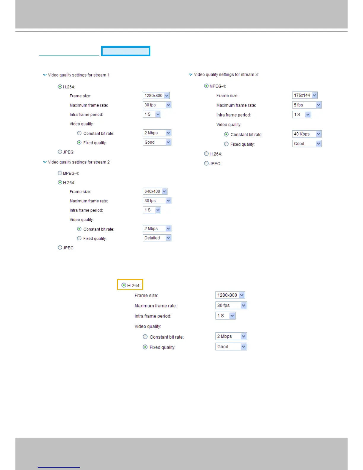 If H.264 / MPEG-4 mode is selected, the video is streamed via RTSP protocol� There are four parameters