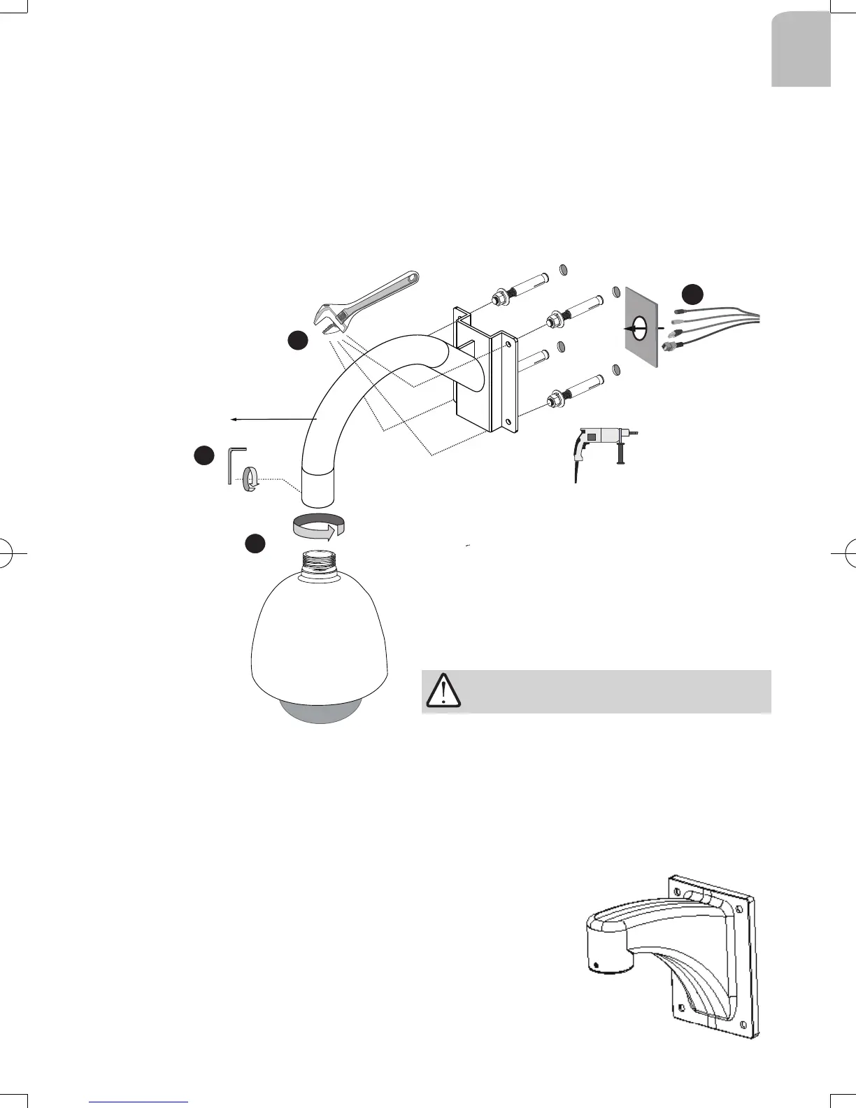 1. Route power lines and other cables through the wall and the bracket.