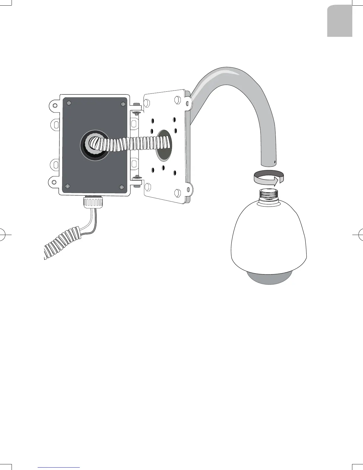 3. Use the included hex head bolts to secure a gooseneck bracket to the junction box.
