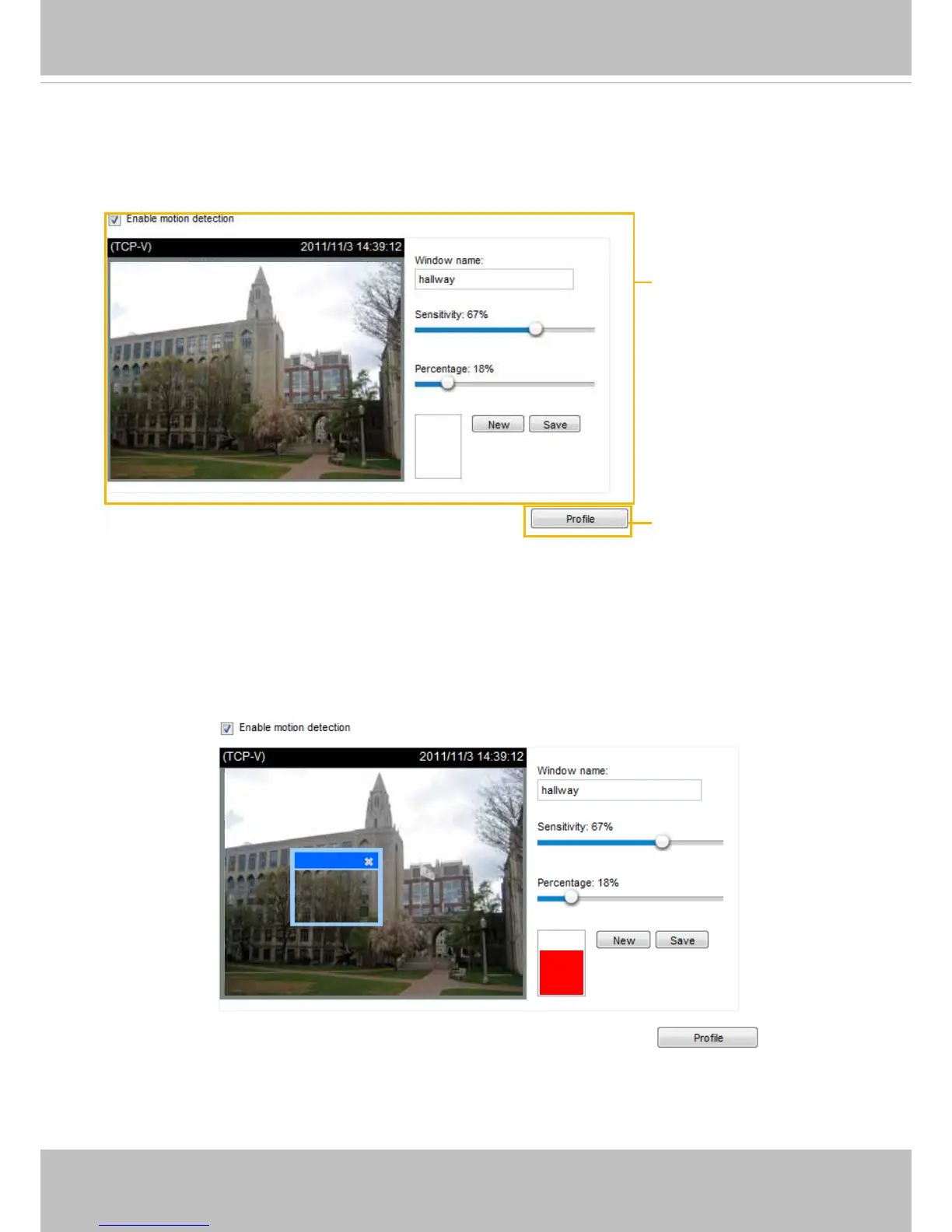 This section explains how to congure the Network Camera to enable motion detection. A total