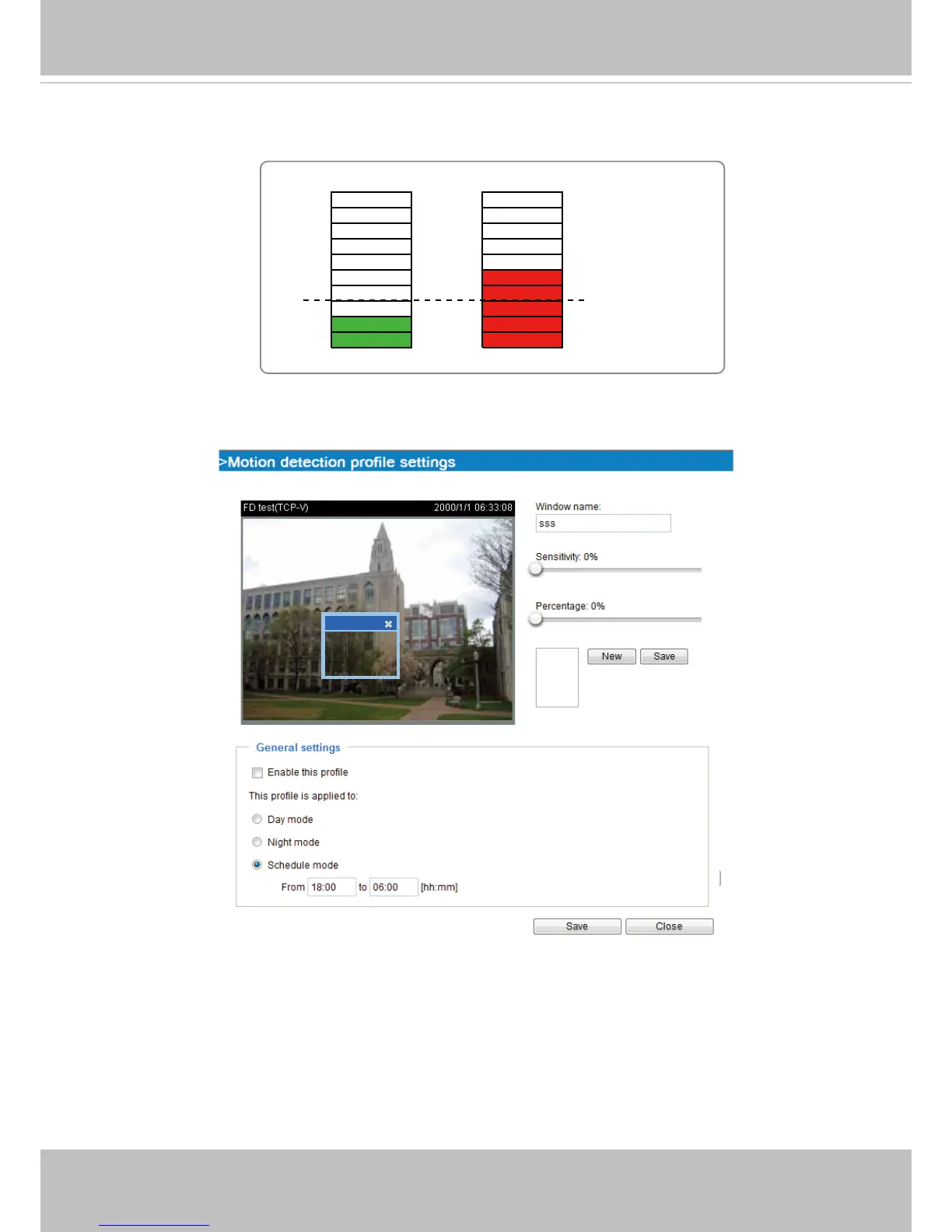 click Prole to open the Motion Detection Prole Settings page as shown below. A total of three motion