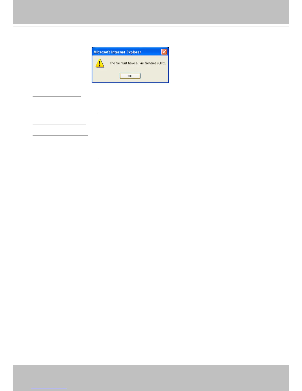 The following message is displayed when attempting to upload an incorrect le format.