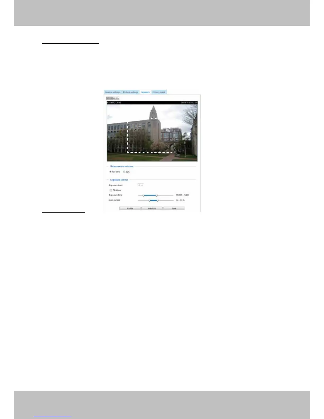 Exposure mode: (Available for IP8152 using a DC-iris lens) - Select Auto or Fixed mode