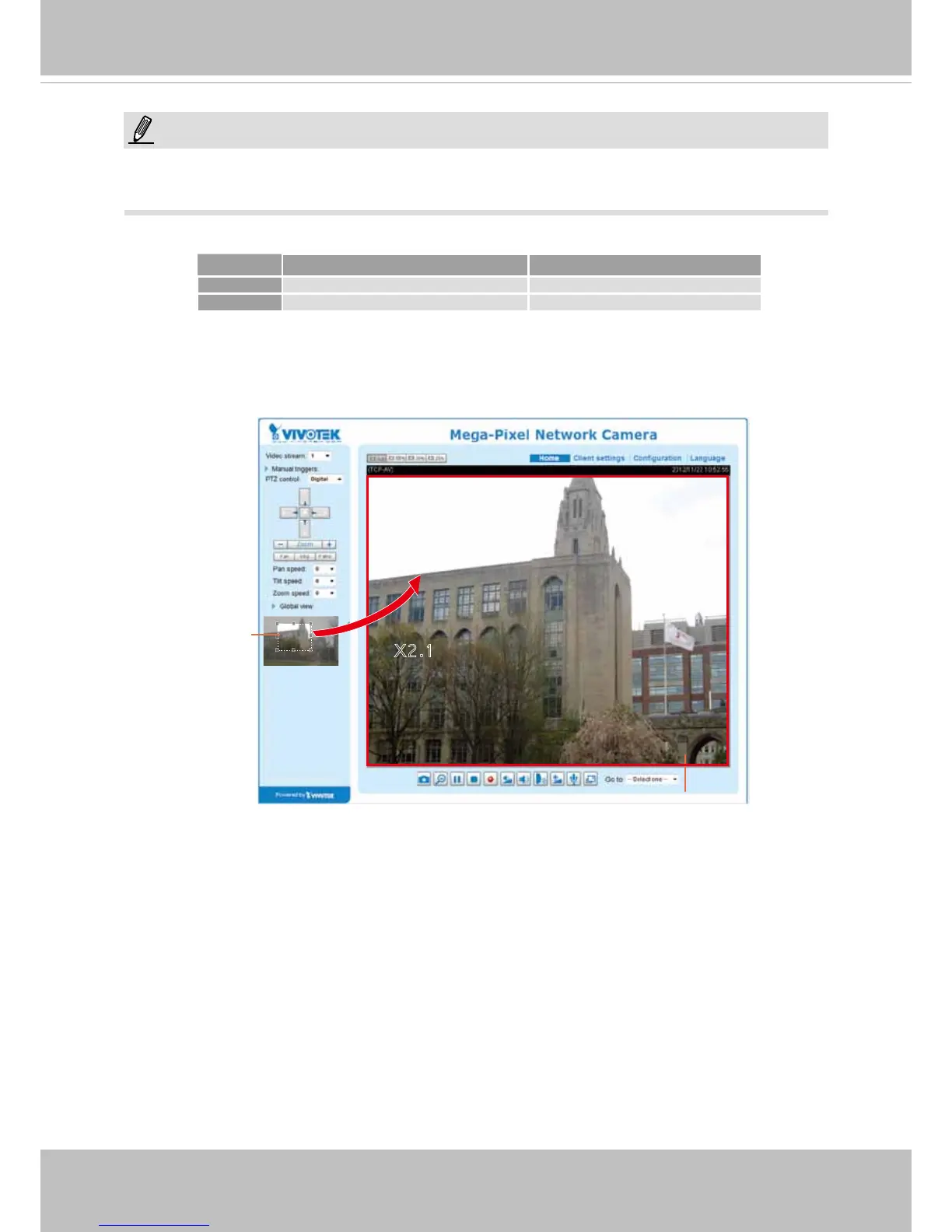the Frame size of each video stream� Then you can go back to the home page to test the e-PTZ