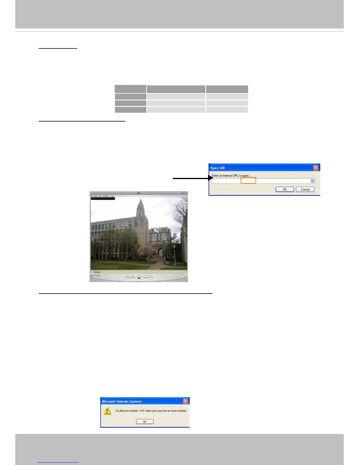 H�264 / MPEG-4 and use the following RTSP URL command to request transmission of the streaming