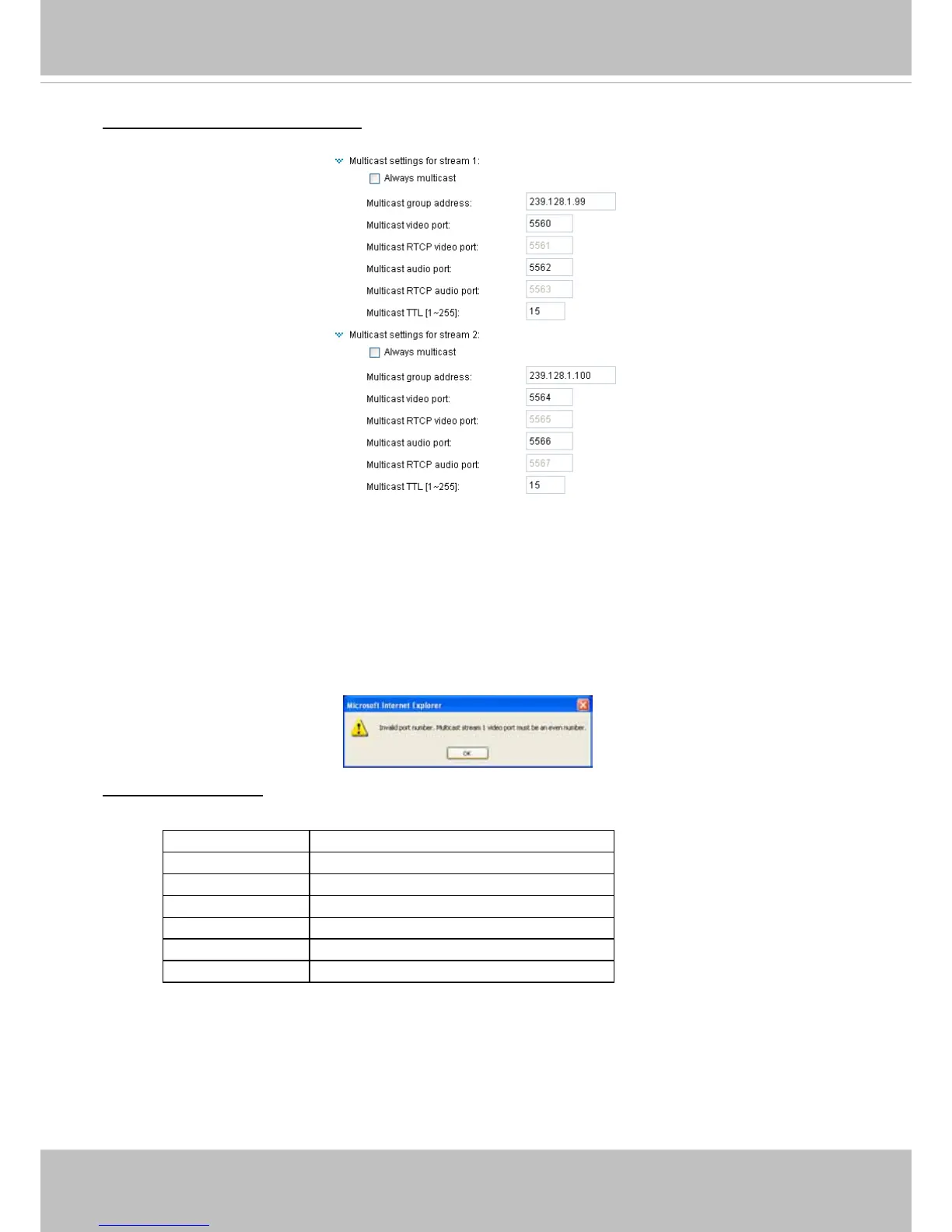 The port numbers can be changed to values between 1025 and 65535� The multicast RTP port must