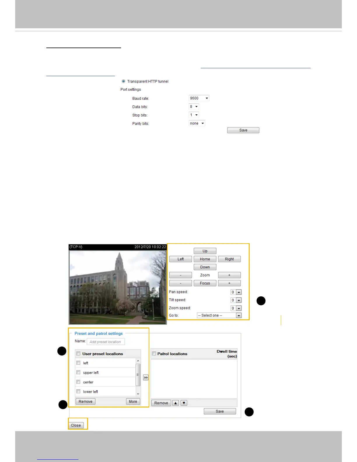 If you select Pelco D protocol, as the PTZ driver and click the Save button, the Preset Position