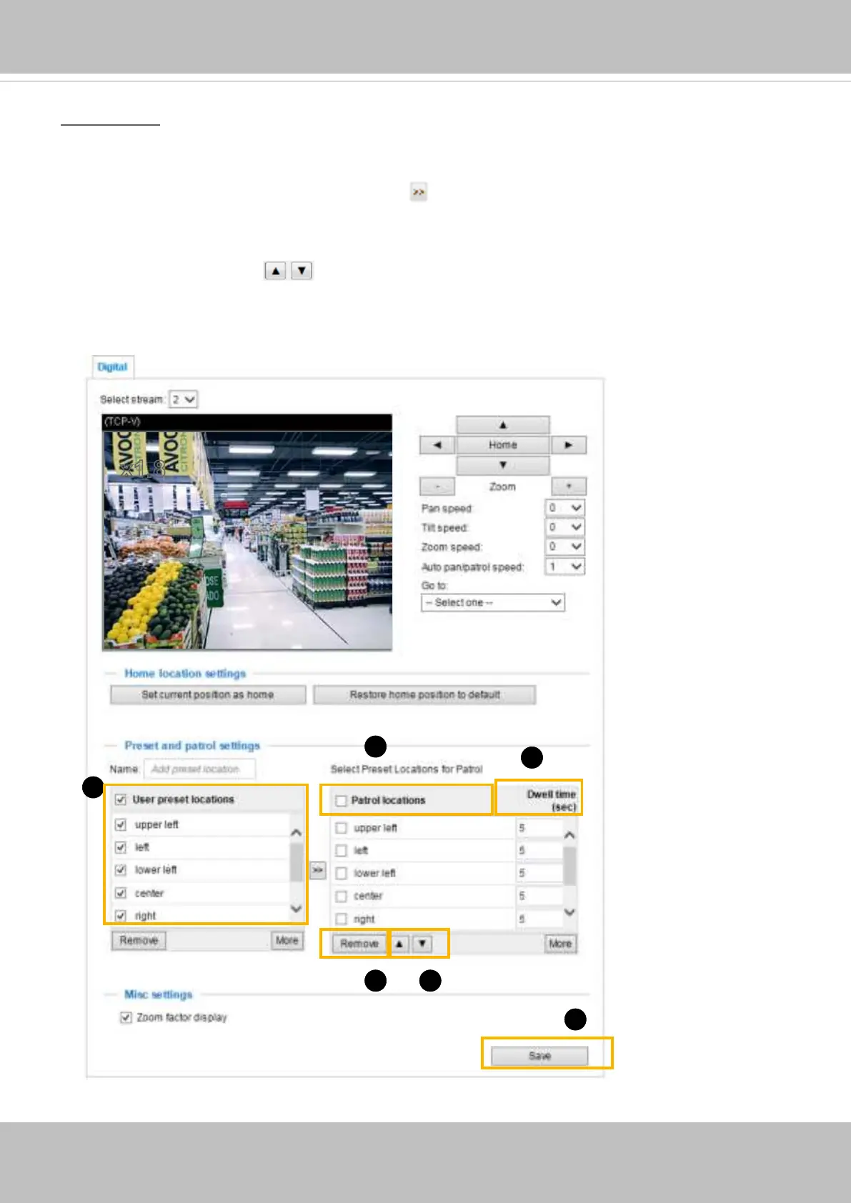 3. Set the Dwelling time for the preset location during an auto patrol.