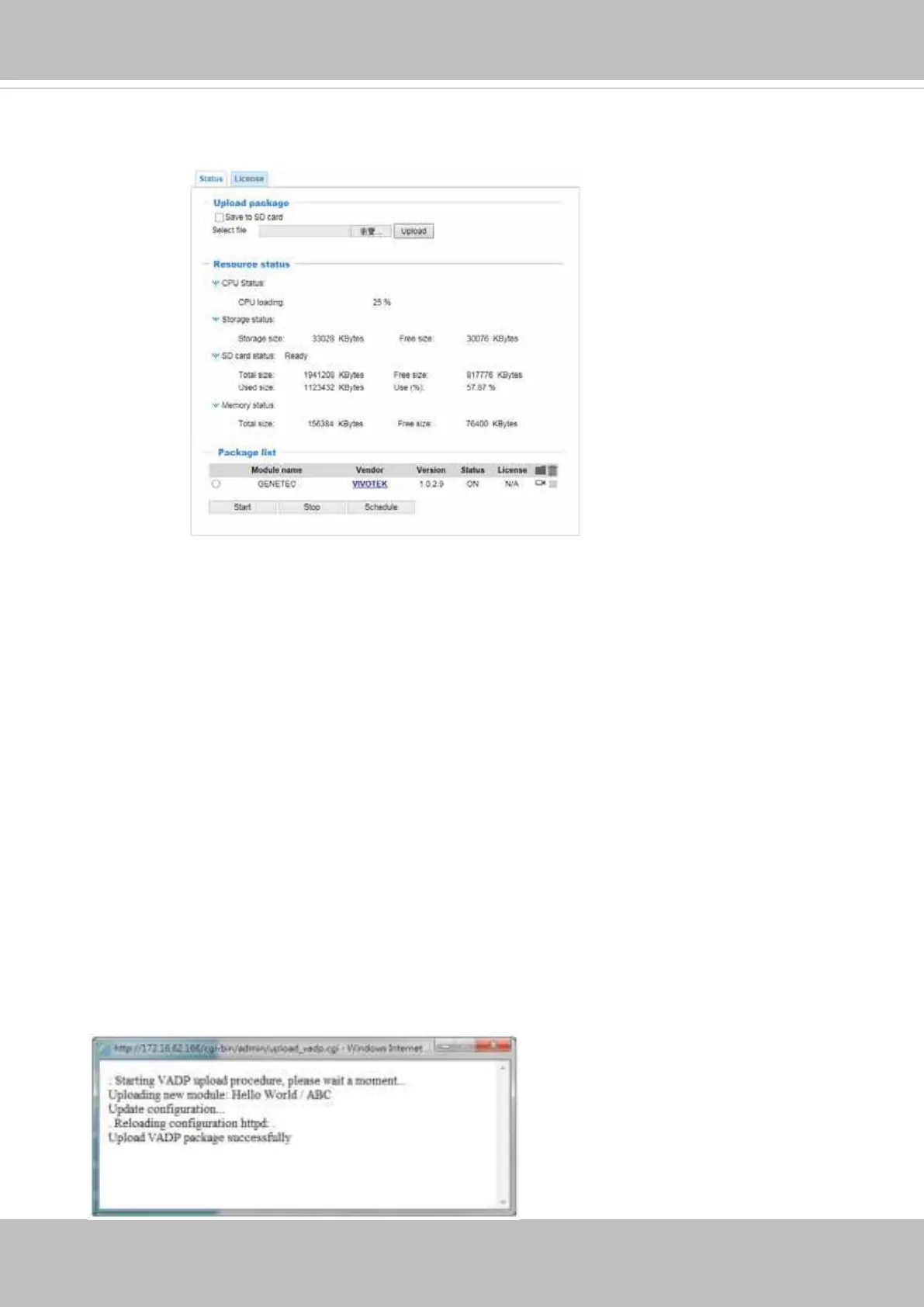 • Once the software package is successfully uploaded, the module conguration (vadp.