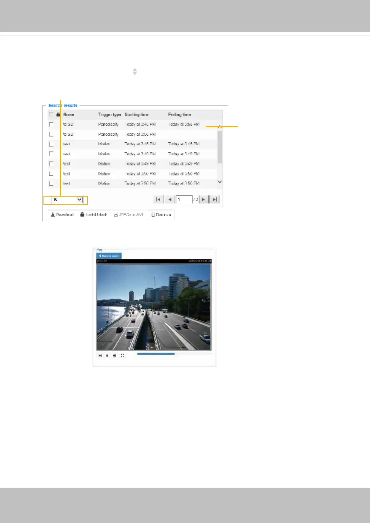 ■ Play: One click on a search result will highlight the selected item. A Play window will appear on