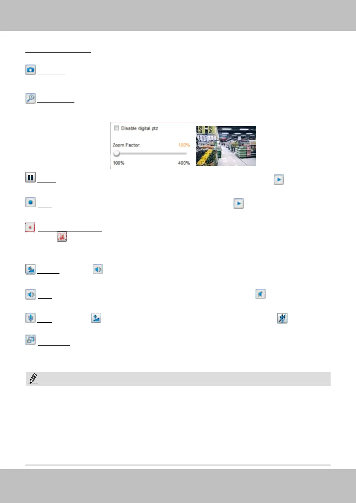 Video Control Buttons: Depending on the Network Camera model and Network Camera conguration,