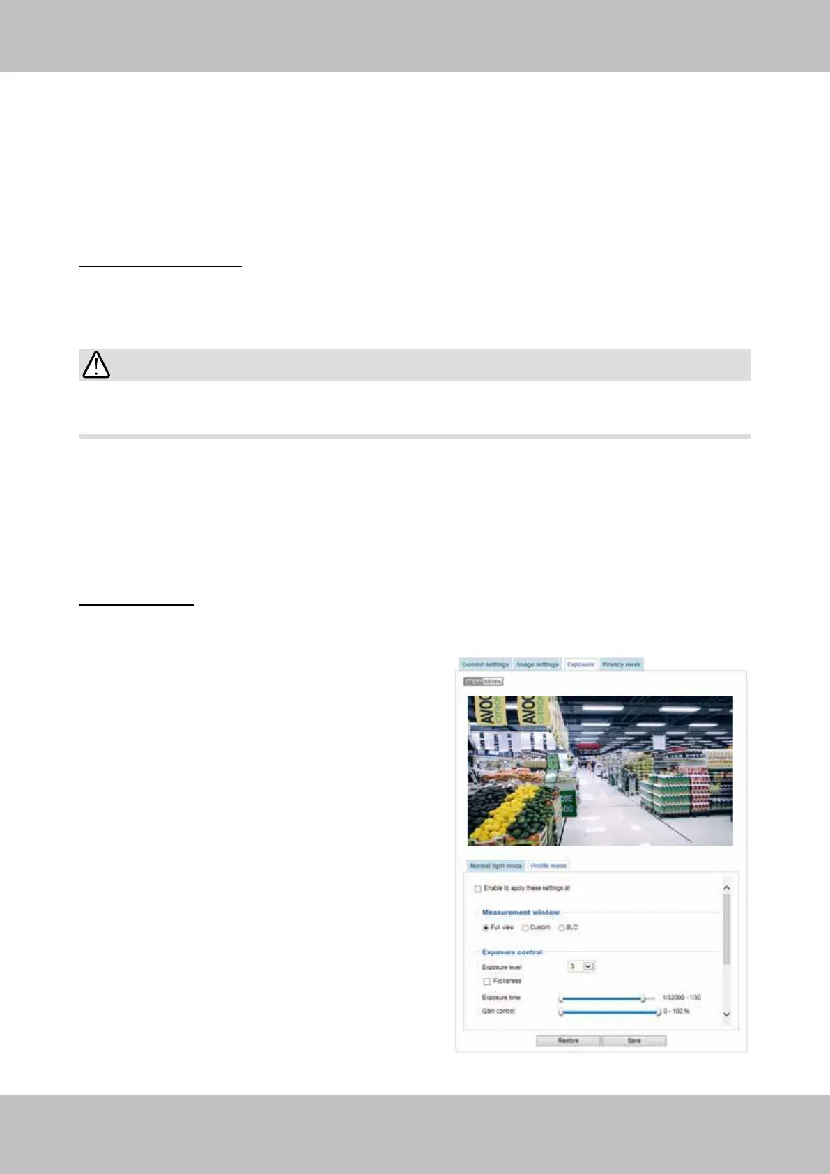 If the IR cut lter setting (Day/Night switching) is congured in the Auto mode, the Prole conguration