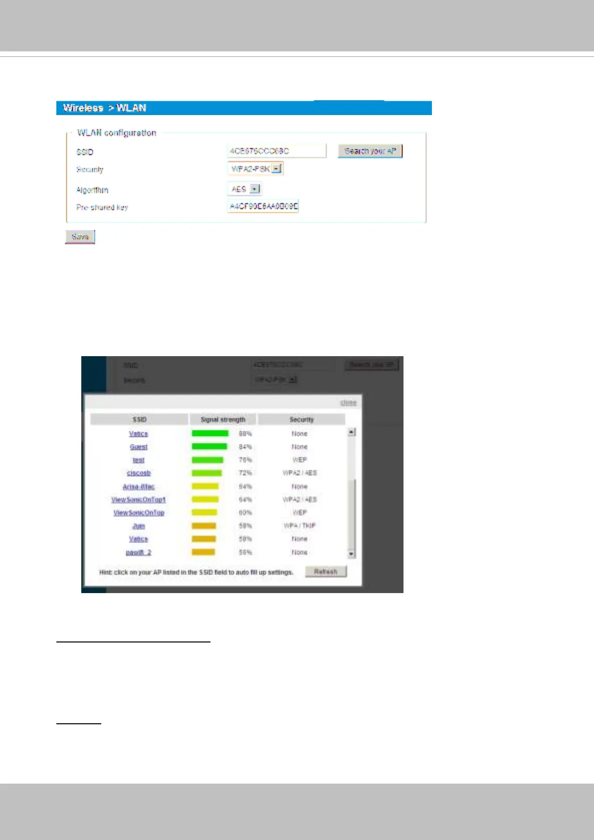 configuration page, you can enter the WLAN settings if configuration change should be