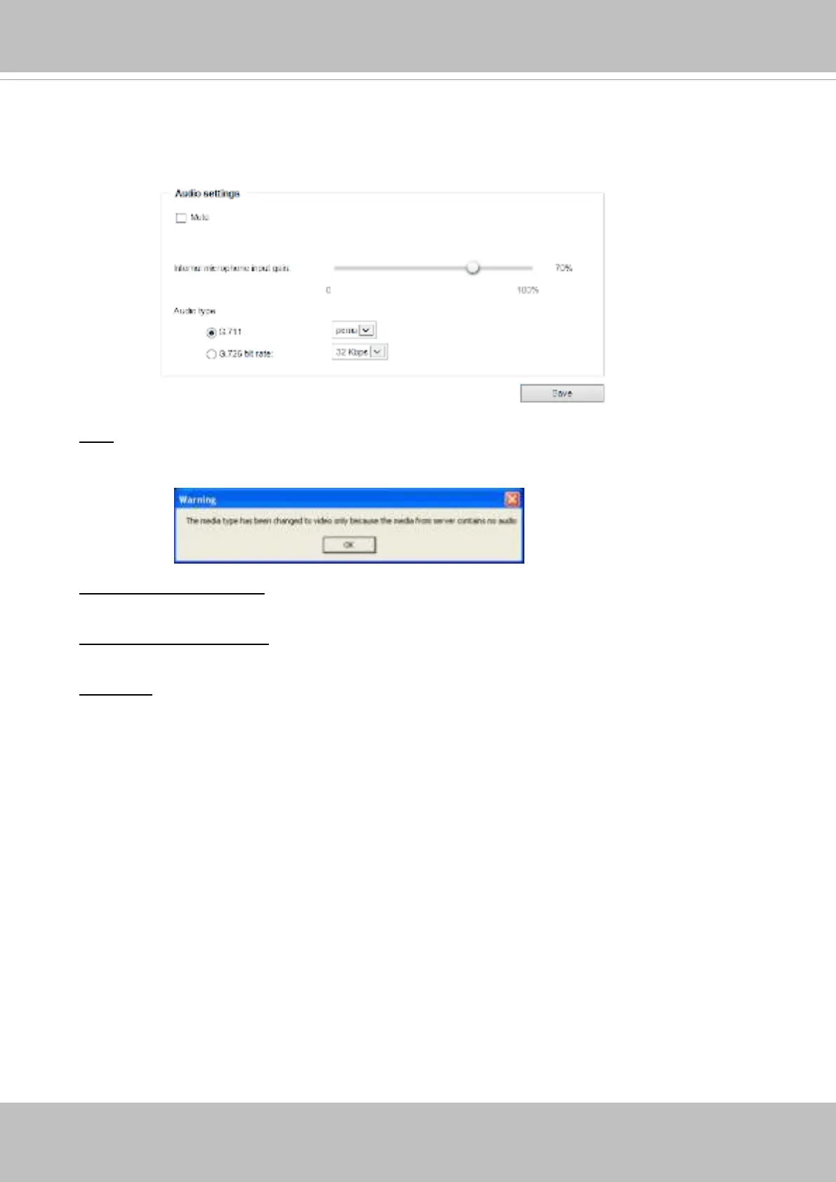 Mute: Select this option to disable audio transmission from the Network Camera to all clients. Note