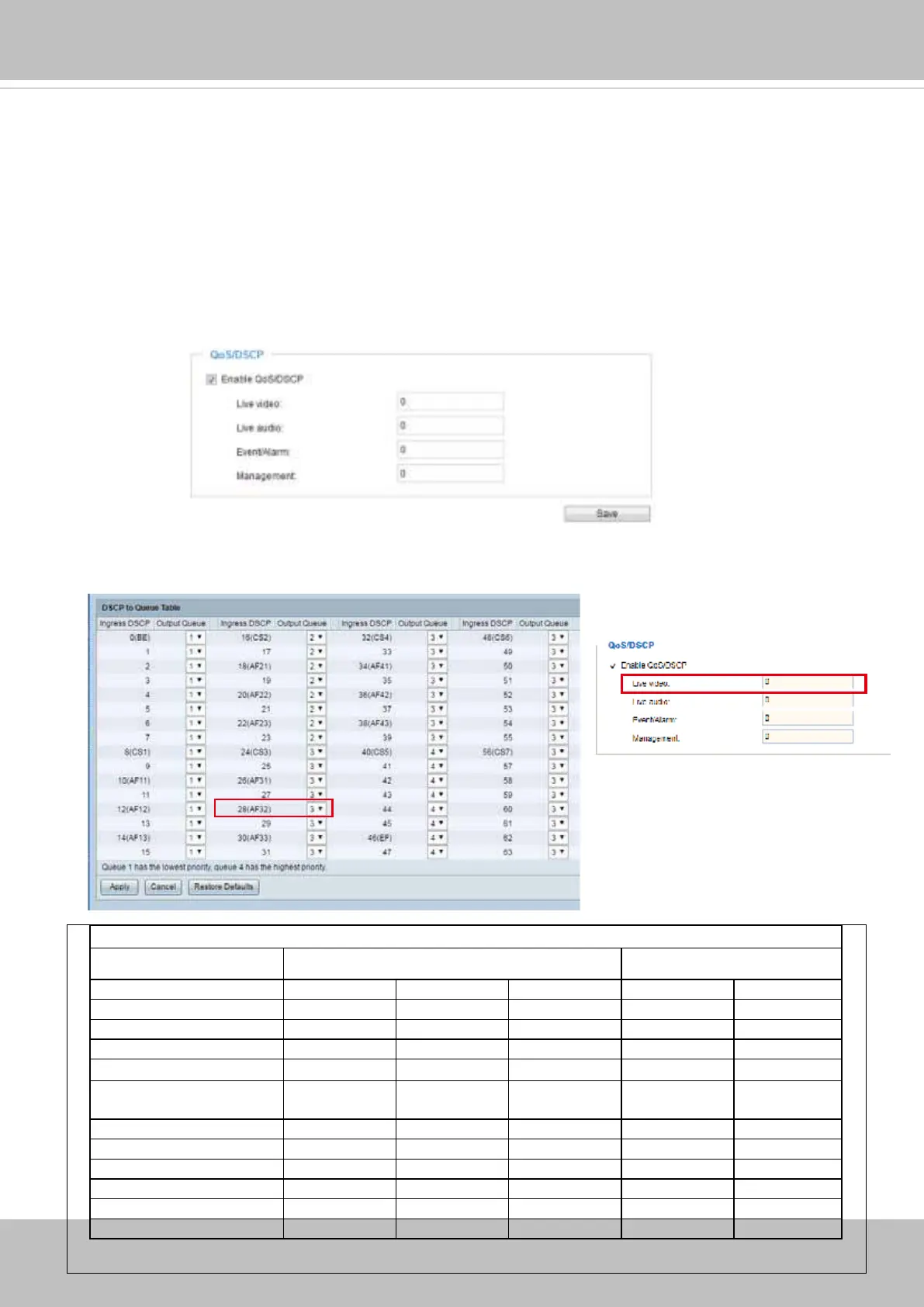 Below are the setting options of DSCP (DiffServ Codepoint). Specify the DSCP value for each application