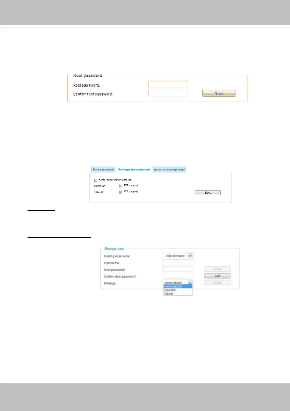 PTZ control: You can modify the management privilege for operators or viewers. Select or deselect