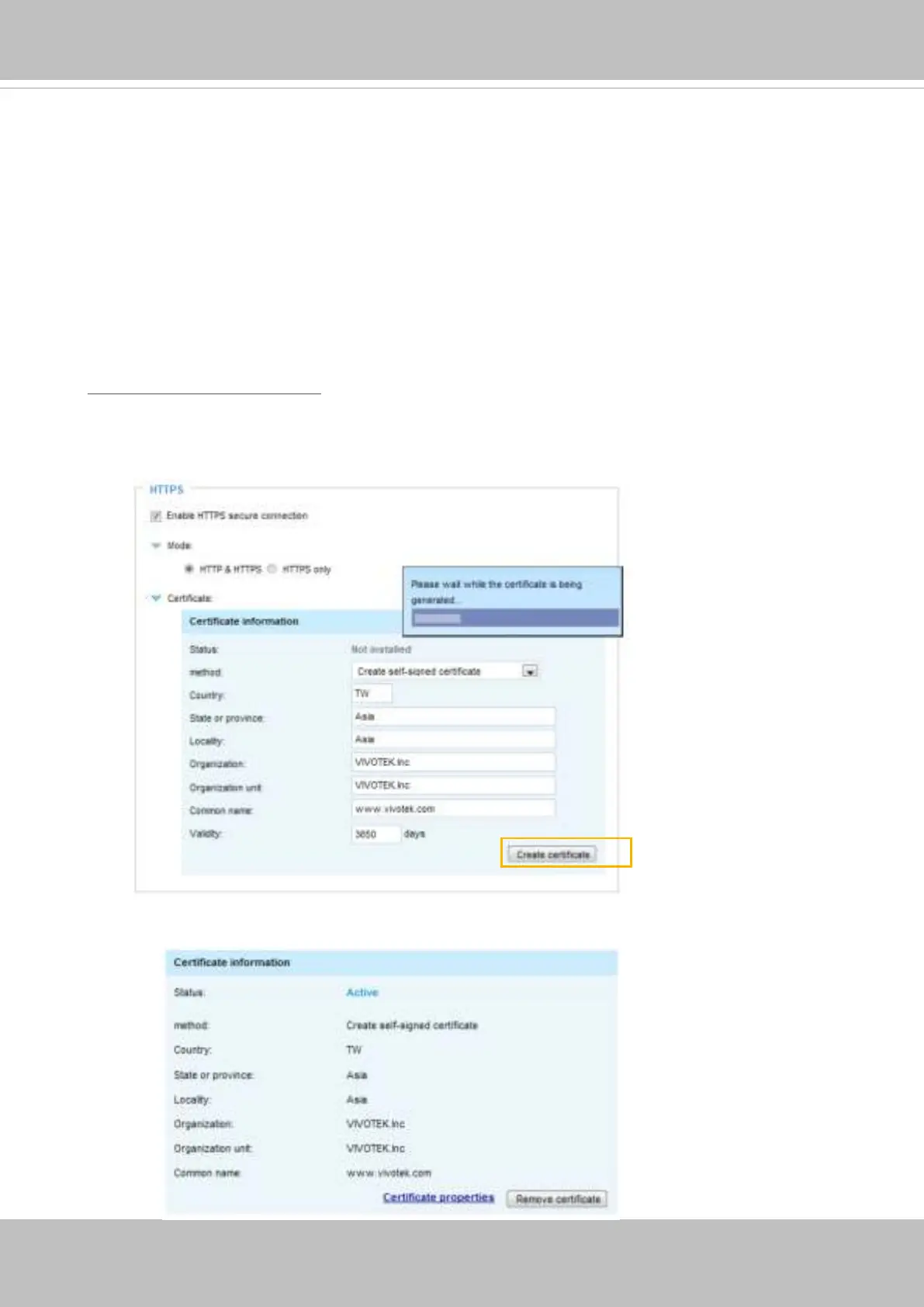 Before using HTTPS for communication with the Network Camera, a Certicate must be created