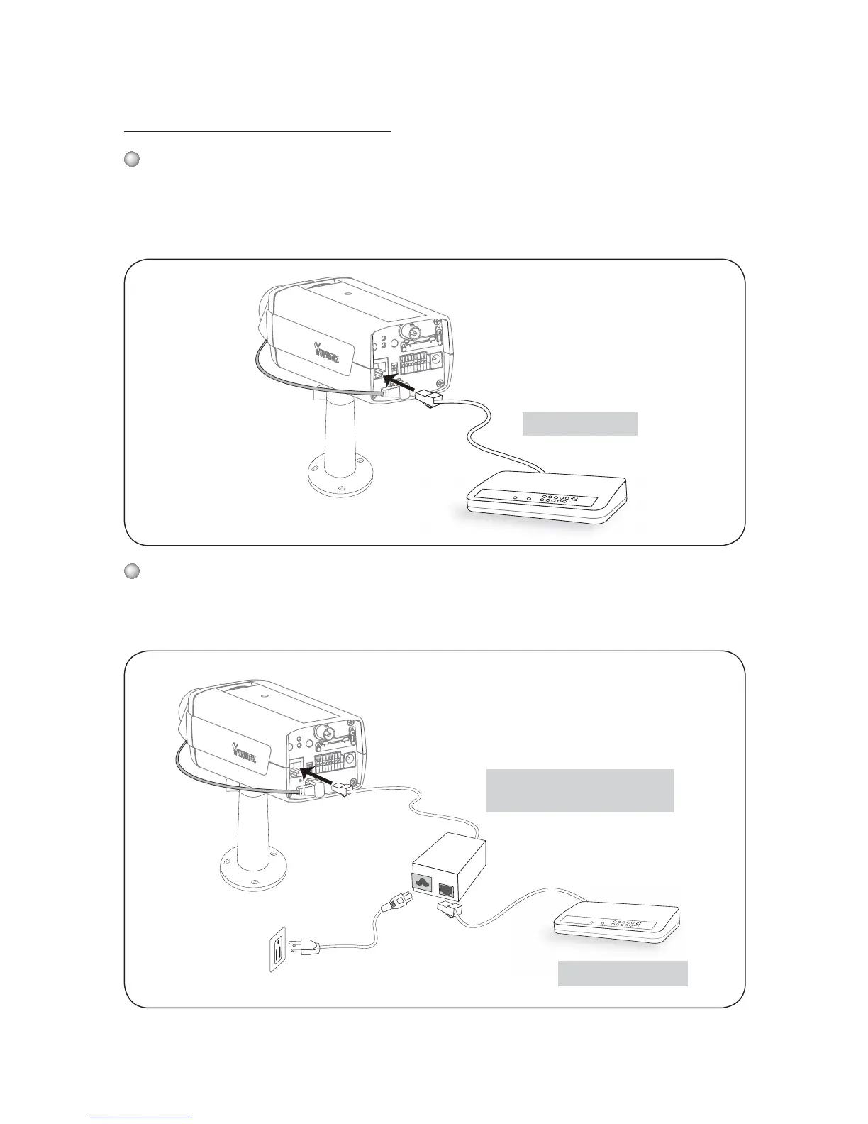 Use a PoE power injector (optional) to connect between the Network Camera and
