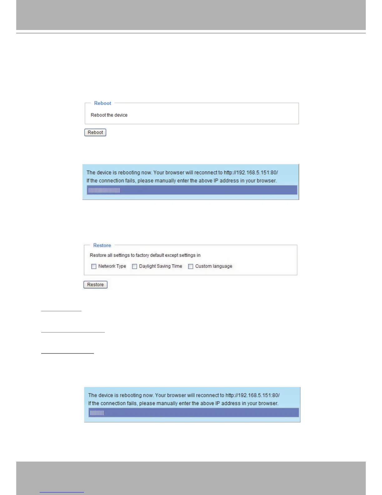 This feature allows you to reboot the Network Camera, which takes about one minute to complete� When
