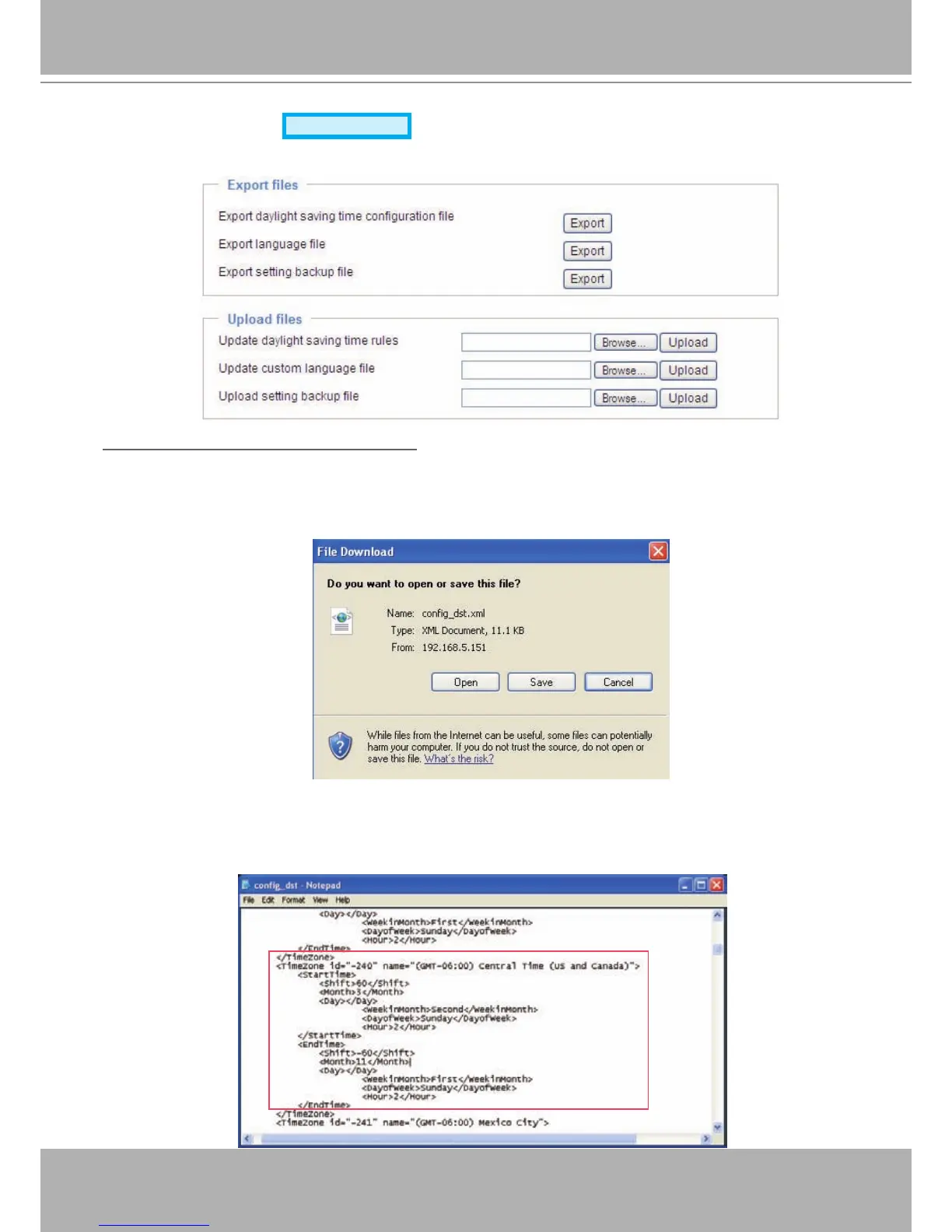 Export daylight saving time conguration le: Click to set the start and end time of DST