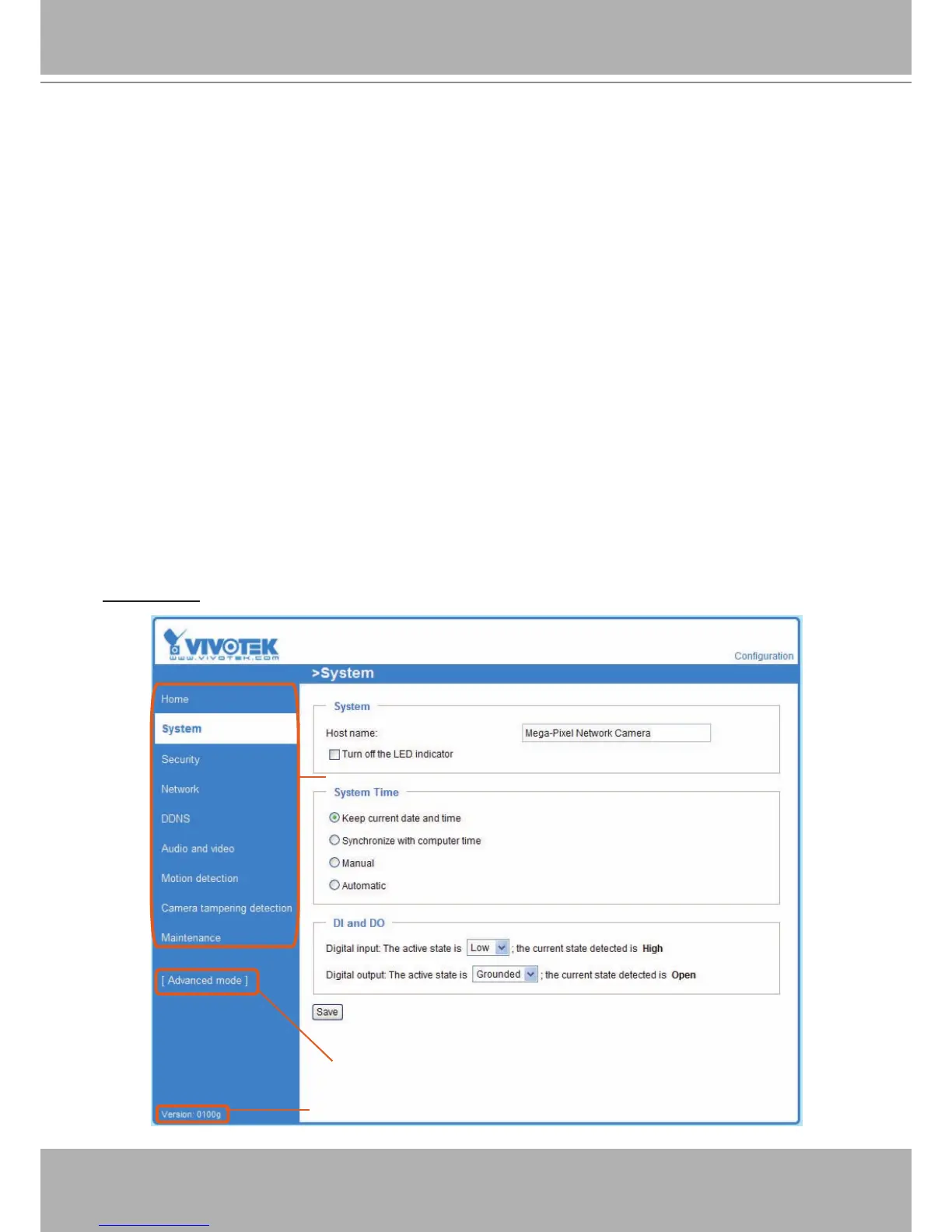 Vivotek IP8161 - Camera Configuration; Basic Mode Interface; Advanced Mode Interface