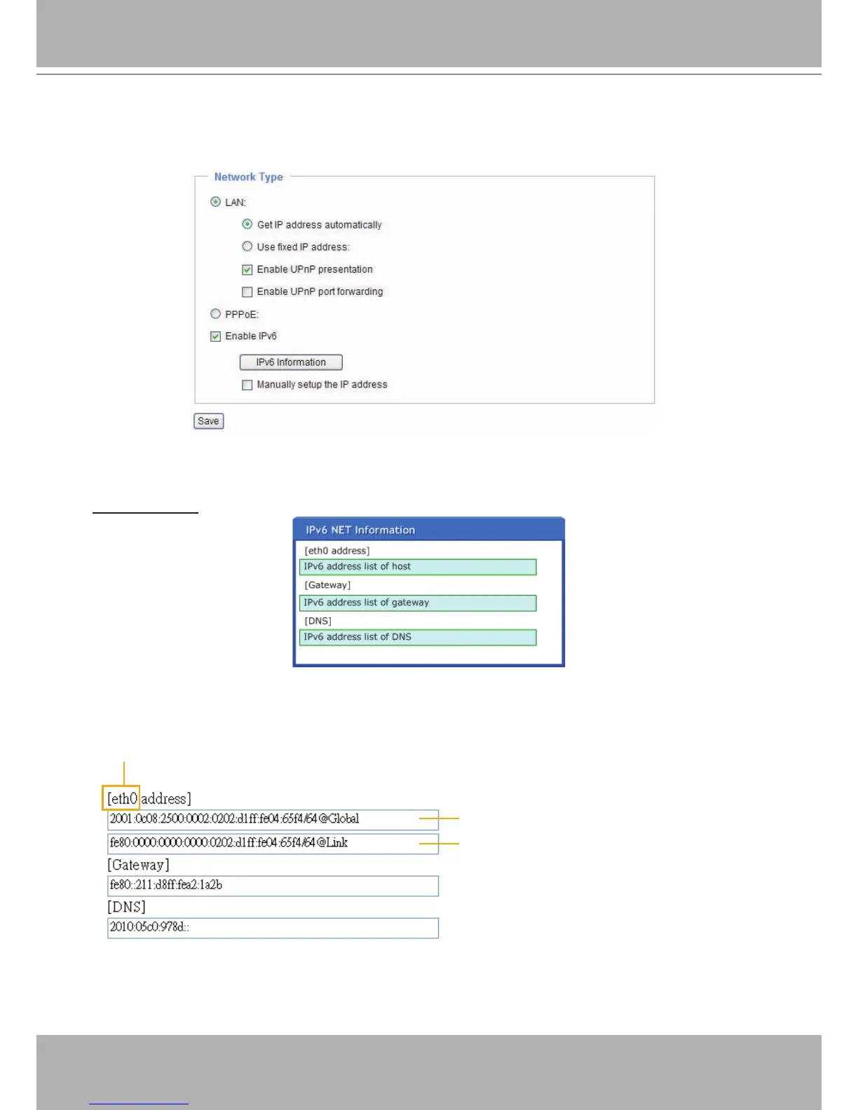 Select this option and click Save to enable IPv6 settings�