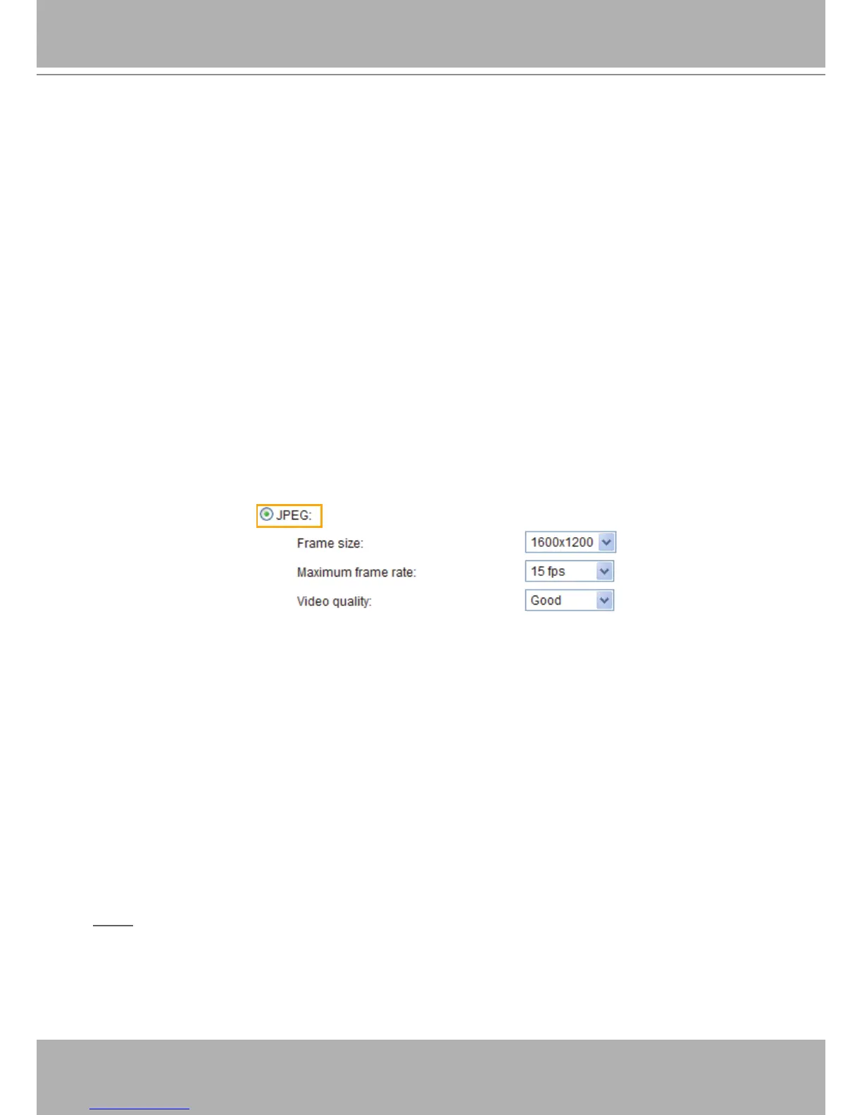If JPEG mode is selected, the Network Camera continuously sends JPEG images to the client, producing