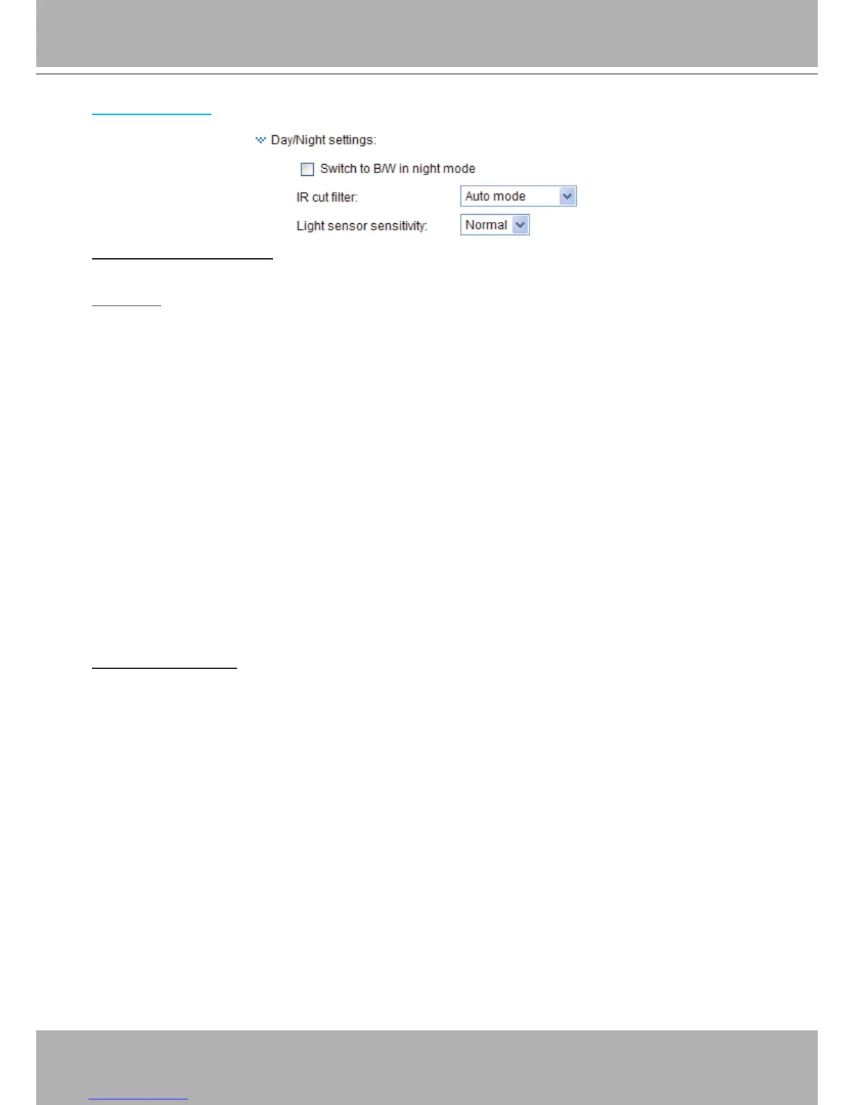 The Network Camera switches between day mode and night mode based on a specied schedule.