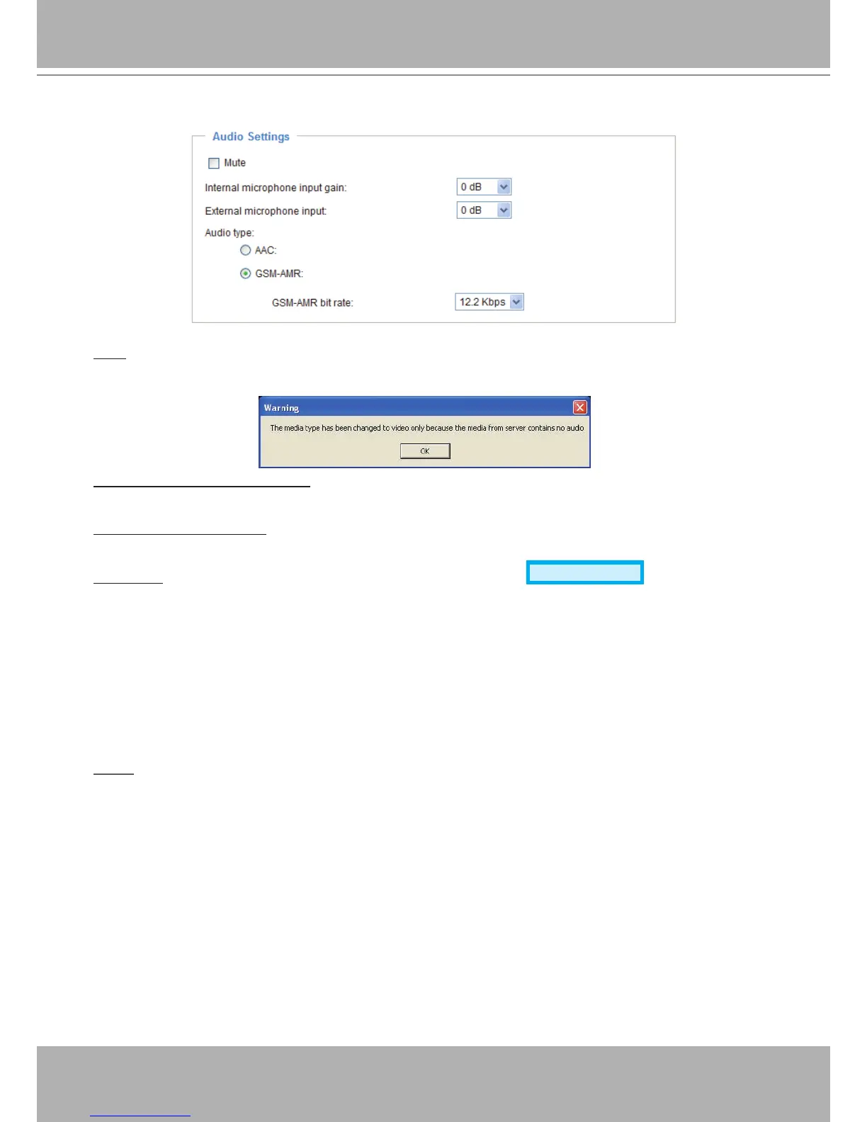 Audio type: Select audio codec AAC or GSM-AMR and the bit rate