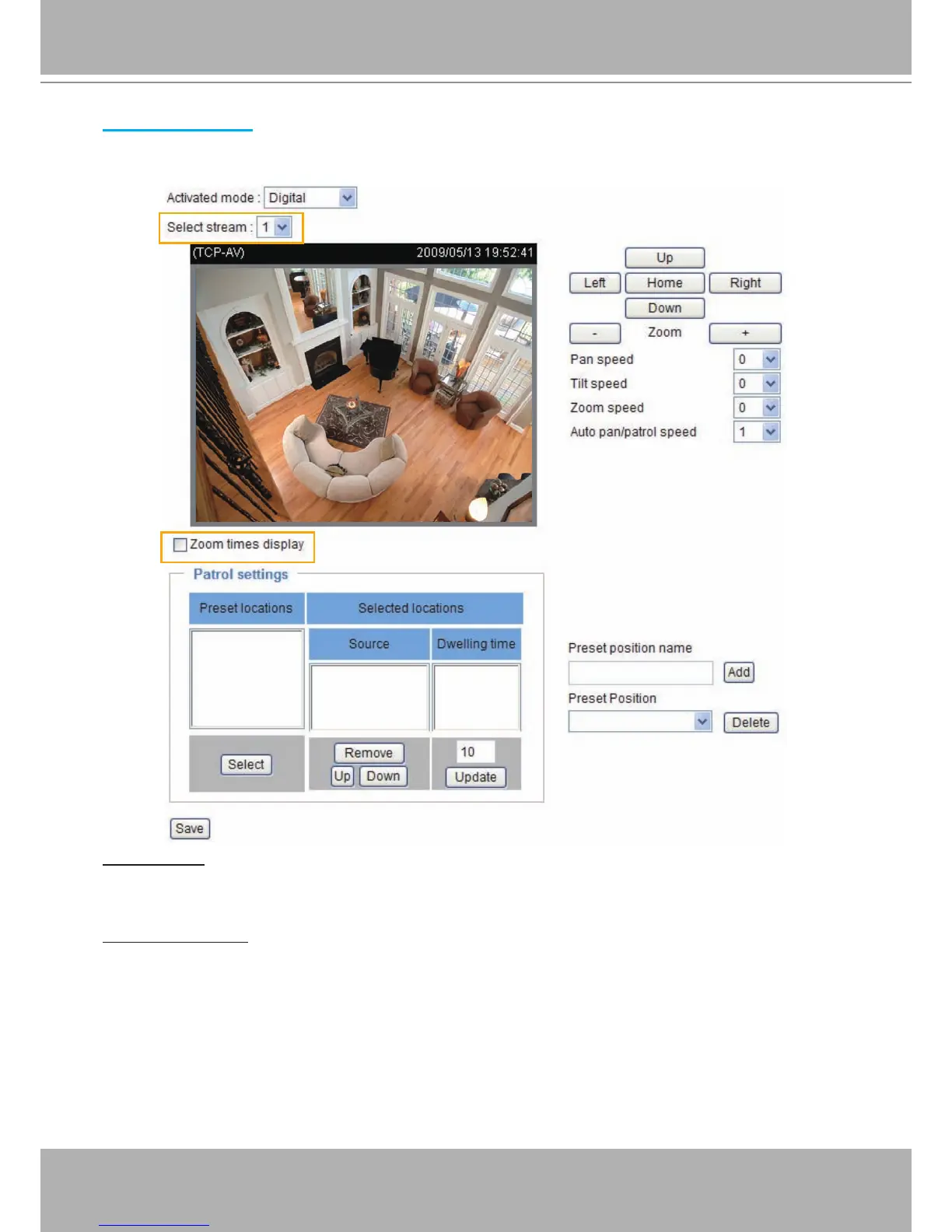 Select Stream: Select one of the stream 1~3 to set up the e-PTZ control� Please note that each stream