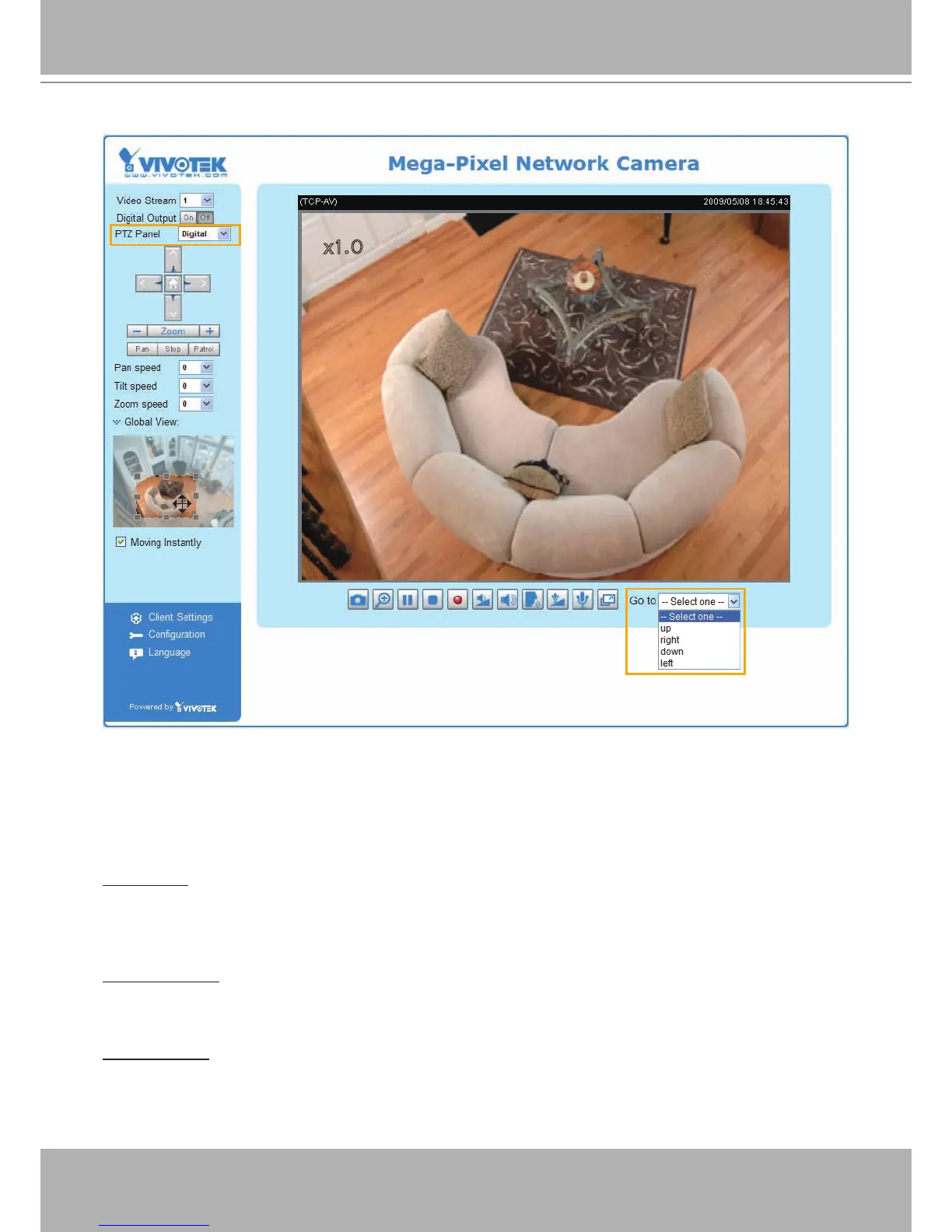The e-PTZ function also supports Click on Image“� When you click on any point of the Global View