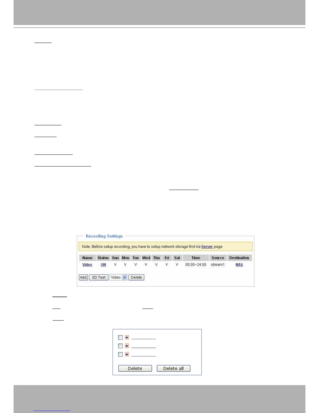 ■ Schedule: The server will start to record les on the local storage or network storage (NAS).