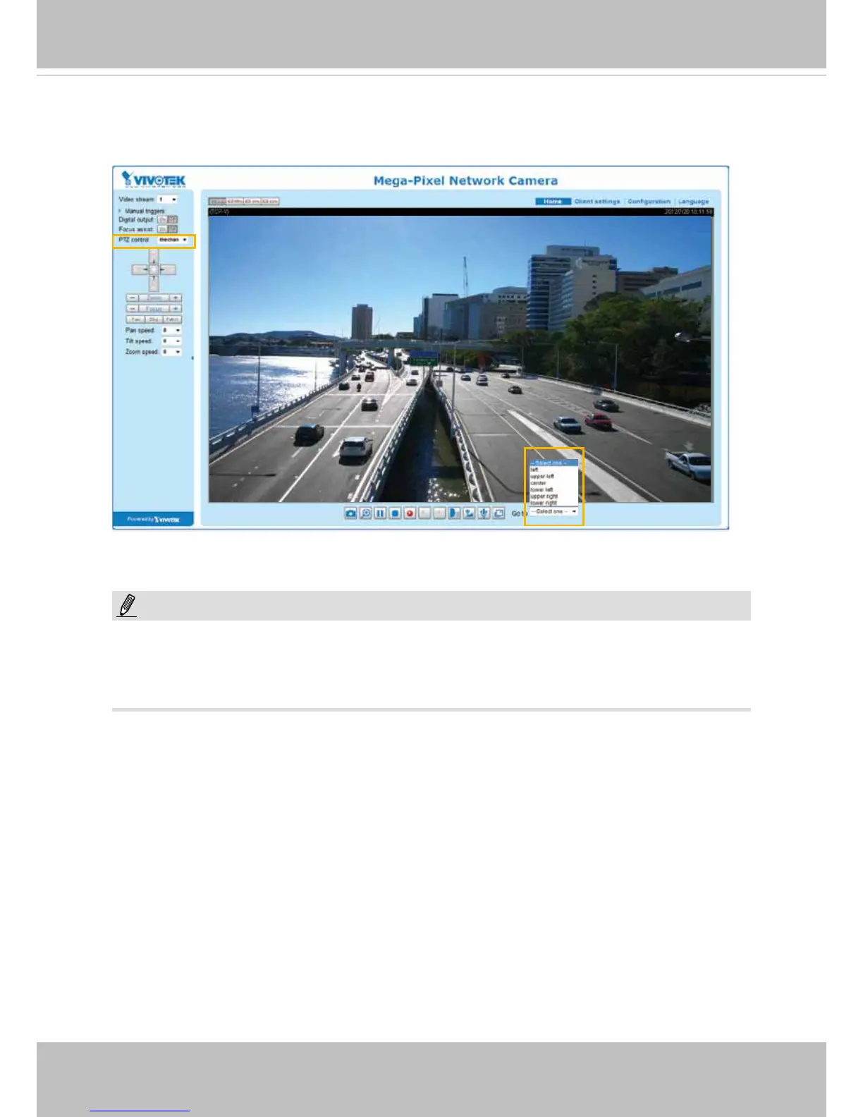 Home page in Mechanical PTZ Mode