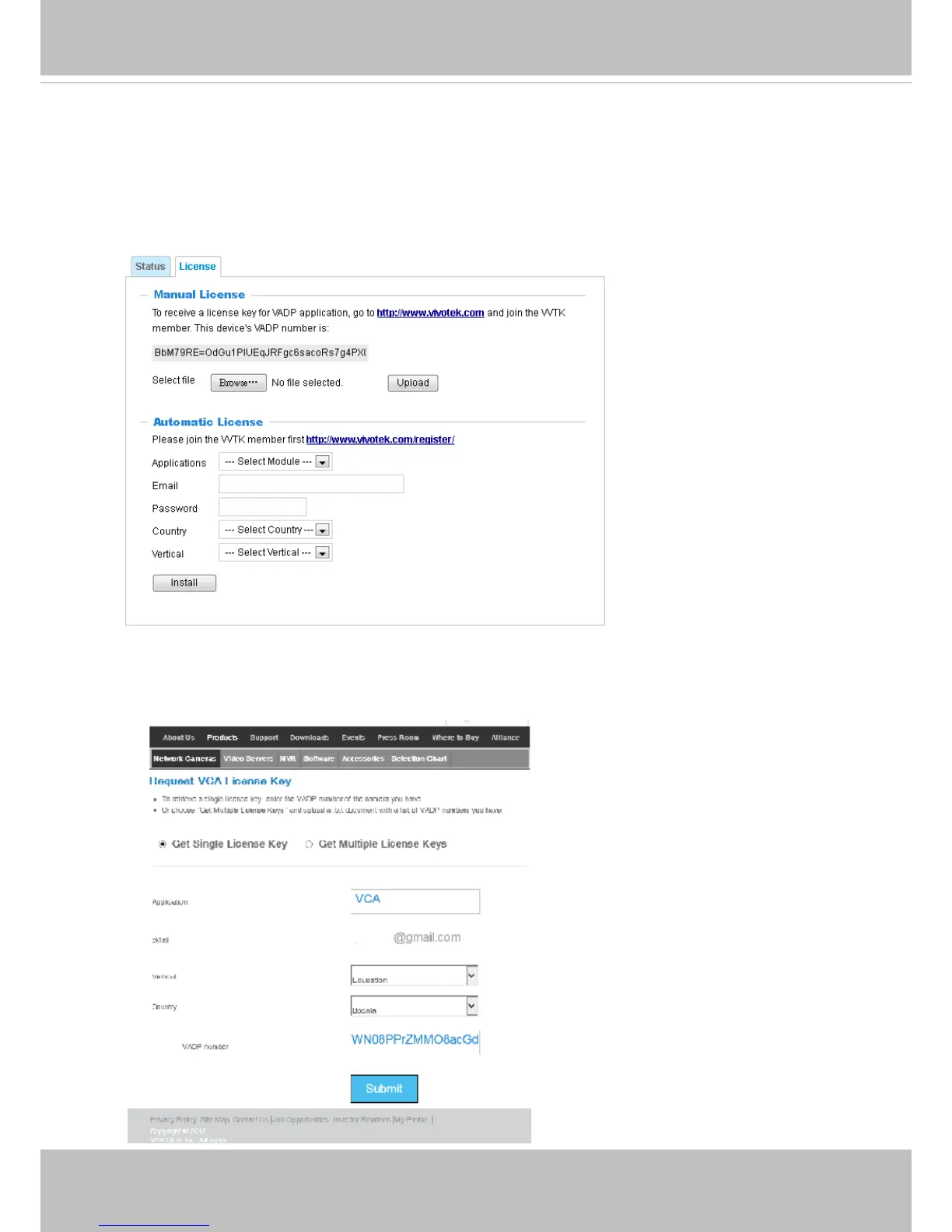 license for using VIVOTEK's VADP modules. The Automatic method requires an Internet