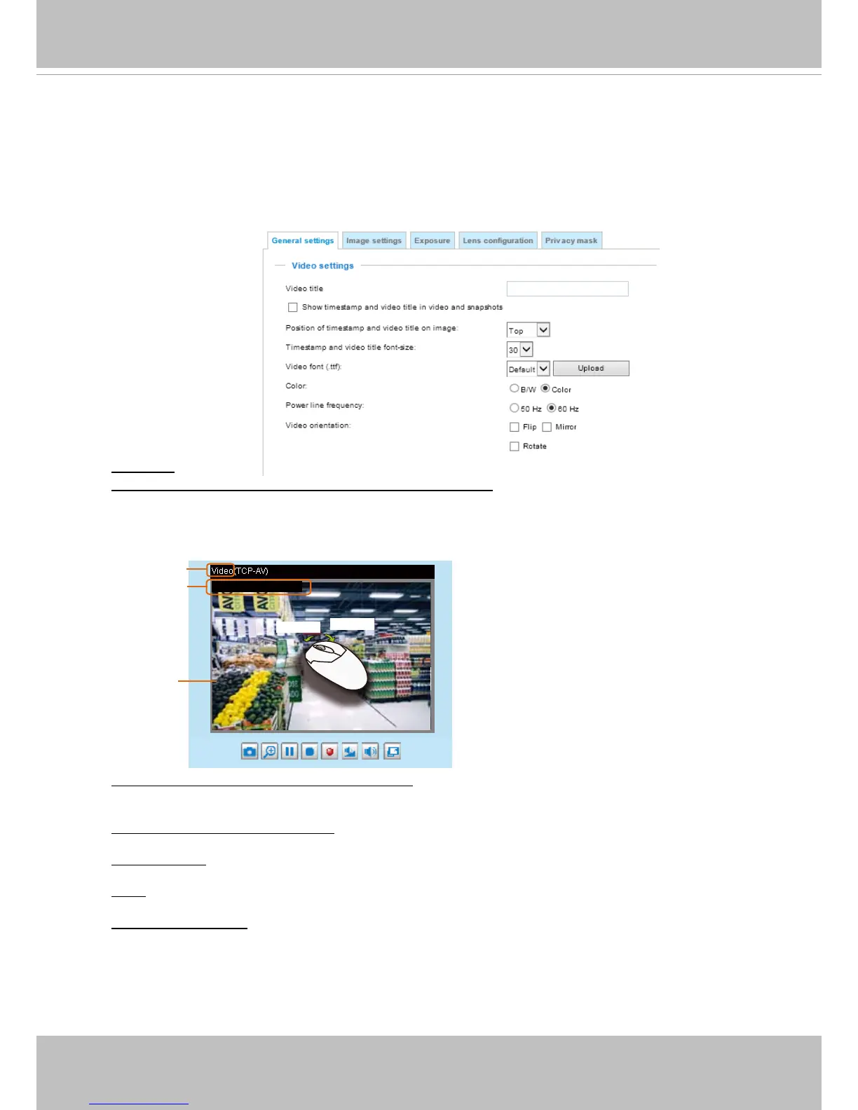 Position of timestamp and video title on image: Select to display time stamp and video title on the