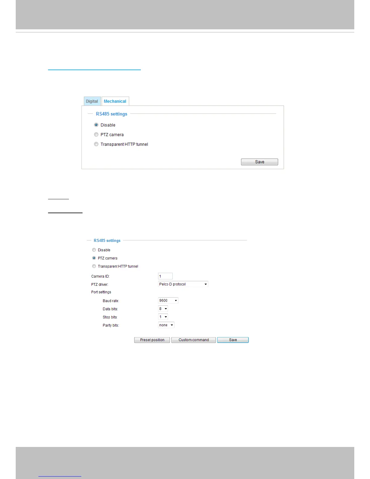 serial interface first. Then you can configure the PTZ driver and RS485 port with the following